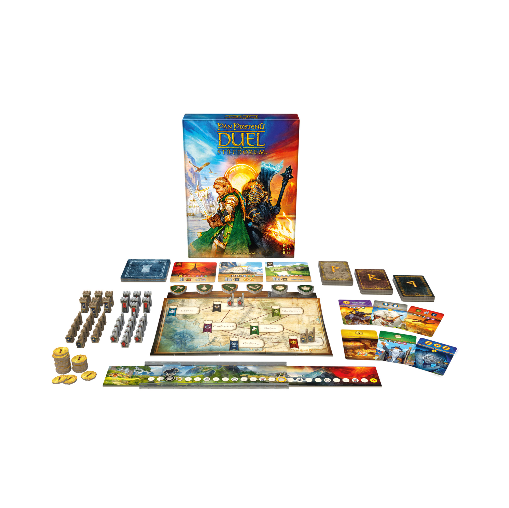 Pán prstenů: Duel o Středozem je karetní hra pro 2 hráče zasazená do legendární trilogie J.R.R. Tolkiena Pán prstenů. válka ohrožuje Středozem. Sauronovo oko neúnavně hledá Jeden prsten, zatímco Společenstvo se shromažďuje kolem Froda a Gandalfa, aby jej zničili. Je čas vybrat si stranu a rozhodnout o osudu Svobodných národů! Budete hrát za Společenstvo prstenu, abyste ubránili svobodné rasy a zničili Jeden prsten? Nebo budete hrát za Saurona a pronásledovat Froda a Sama, zatímco budete rozmisťovat své hordy k branám nepřátelských měst? Osud Středozemě je ve vašich rukou! Hra se odehrává ve 3 po sobě jdoucích kapitolách, které se vyvíjejí podobně. Ve svém tahu posilujte své dovednosti, shromažďujete poklady, rozšiřujete své jednotky po celé Středozemi, sjednocujete rasy pro svou věc nebo postupujte na cestě Prstenu. Vyhrajte hru splněním jedné ze 3 podmínek vítězství: Dokončete putování Prstenu, získejte podporu 6 různých ras, obsaďte Středozem. Hra Pán prstenů: Duel o Středozem obsahuje: herní desku, stupnici putování Prstenu (ze 4 dílů), 69 karet, 44 figurek, 18 žetonů, 30 mincí, 7 dílů lokací, 1 přehled efektů, česká a slovenská pravidla.