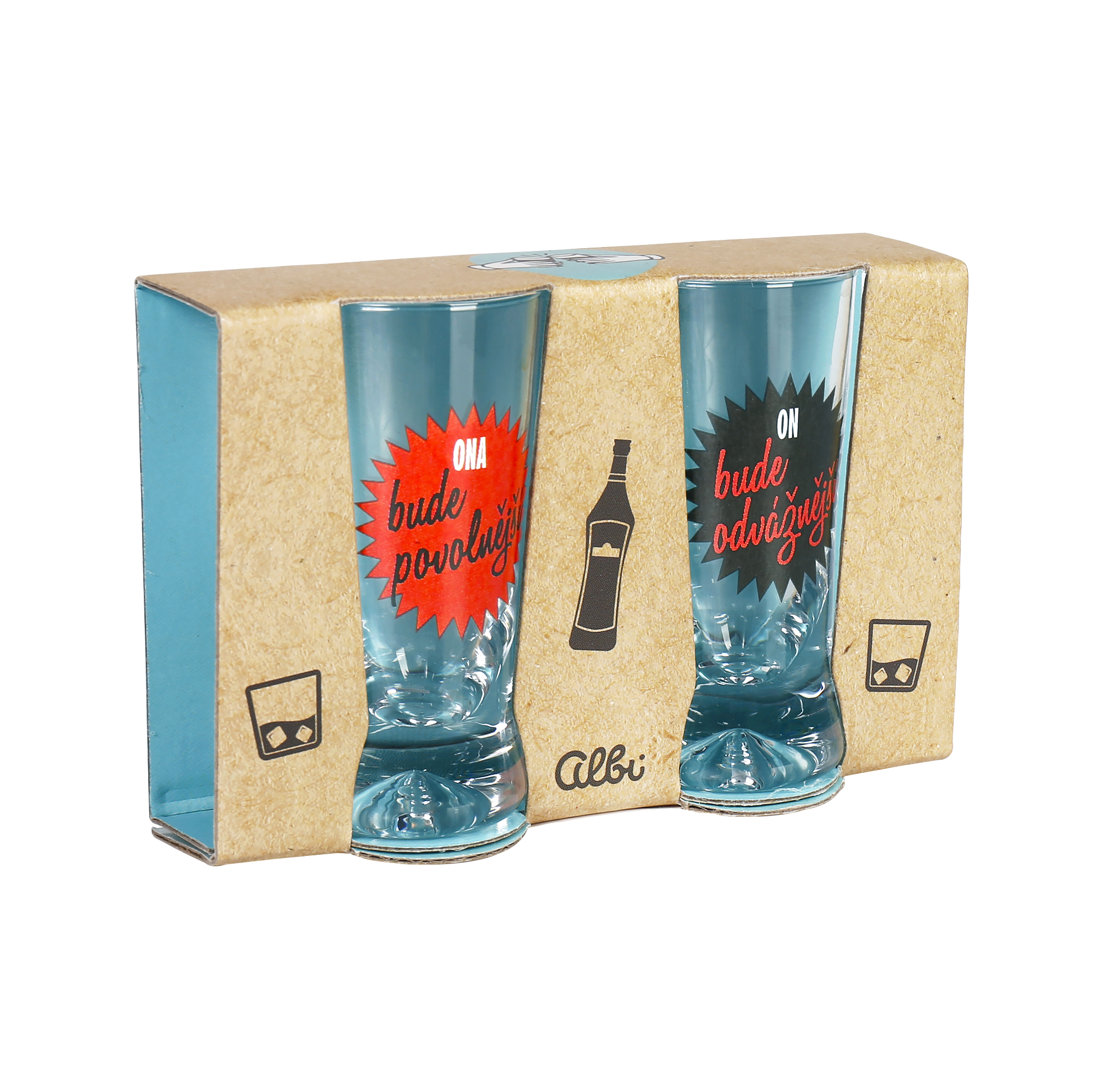 Chystáte se na oslavu, ale zatím nemáte žádný dárek? Skvělým tipem jsou panáky. Na párty se rozhodně neztratí a trefný text nenechá suché jediné oko. Humorný potisk je zaměřený jak pro pár tak i single. Panáky nejsou vhodné do myčky nádobí. Objem: 2 × 50 ml