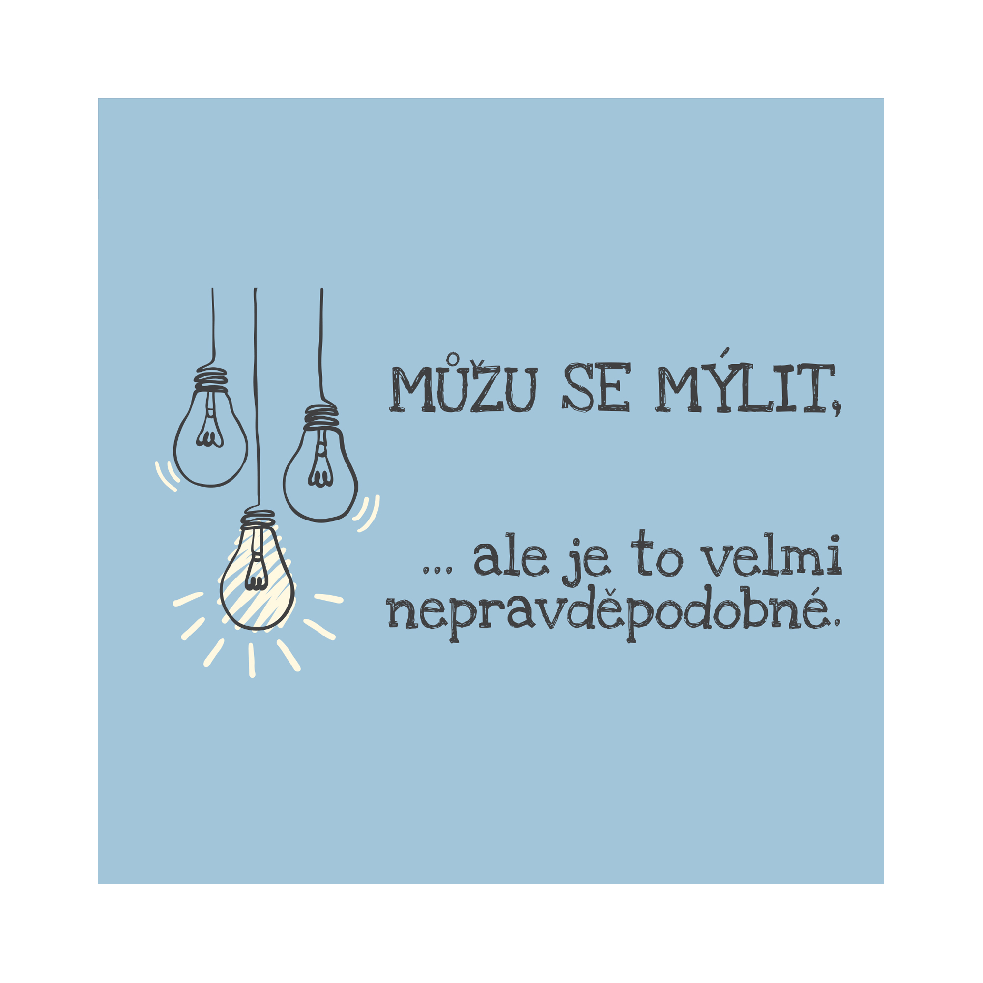 Najít ve skříni ten správný kus oblečení, který by přesně vyjádřil vaši osobnost, je často pěkná fuška. Trička s potiskem vám dají možnost být sami sebou a ukázat světu, kdo jste! Každý máme ve svém okolí nějakého chytráka, co se nikdy neplete – oceňte ho a darujte mu tričko s potiskem. Perfektní dárek k narozeninám, pod vánoční stromeček, nebo jen tak pro radost. Příjemný střih a materiál zajistí, že se v něm bude cítit maximálně pohodlně úplně každý! Dámská trička Tabulka velikostí S M L XL délka 64 cm 67 cm 69 cm 71 cm šířka 41 cm 43 cm 47 cm 50 cm Pánská trička Tabulka velikostí M L XL XXL délka 74 cm 76 cm 79 cm 81 cm šířka 51 cm 56 cm 61 cm 66 cm Trička jsou vyrobena ze 100% bavlny.