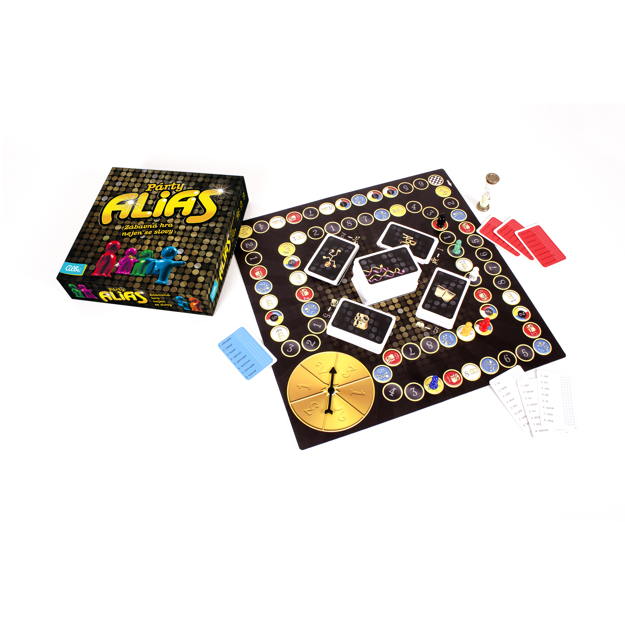 Zábavná hra nejen se slovy vhodná na každou párty! Slavíte? Pořádáte párty? Párty Alias rozproudí zábavu! V této hře vysvětlujete ostatním spoluhráčům význam slov pomocí jiných výrazů, takže používáte například synonyma, protiklady a nápovědy. Na prémiových polích na vás čekají i jiné úkoly: předvádění zvířat či povolání, hledání vhodných rýmů, popisování slavných osobností nebo hledání co nejvíce slov na jedno písmeno. Kdo zná originální hru Párty Alias v angličtině, tak zajisté docení změny, které jsme pro vás v její české variantě připravili. Hra, která nesmí chybět na žádné párty a rodinné oslavě! Byla slavnostně pokřtěna známým moderátorem Honzou Musilem dne 3. října 2009. Hra Párty Alias obsahuje: 400 karet (3100 slov), 1 herní plán, 6 figurek, 1 přesýpací hodiny.