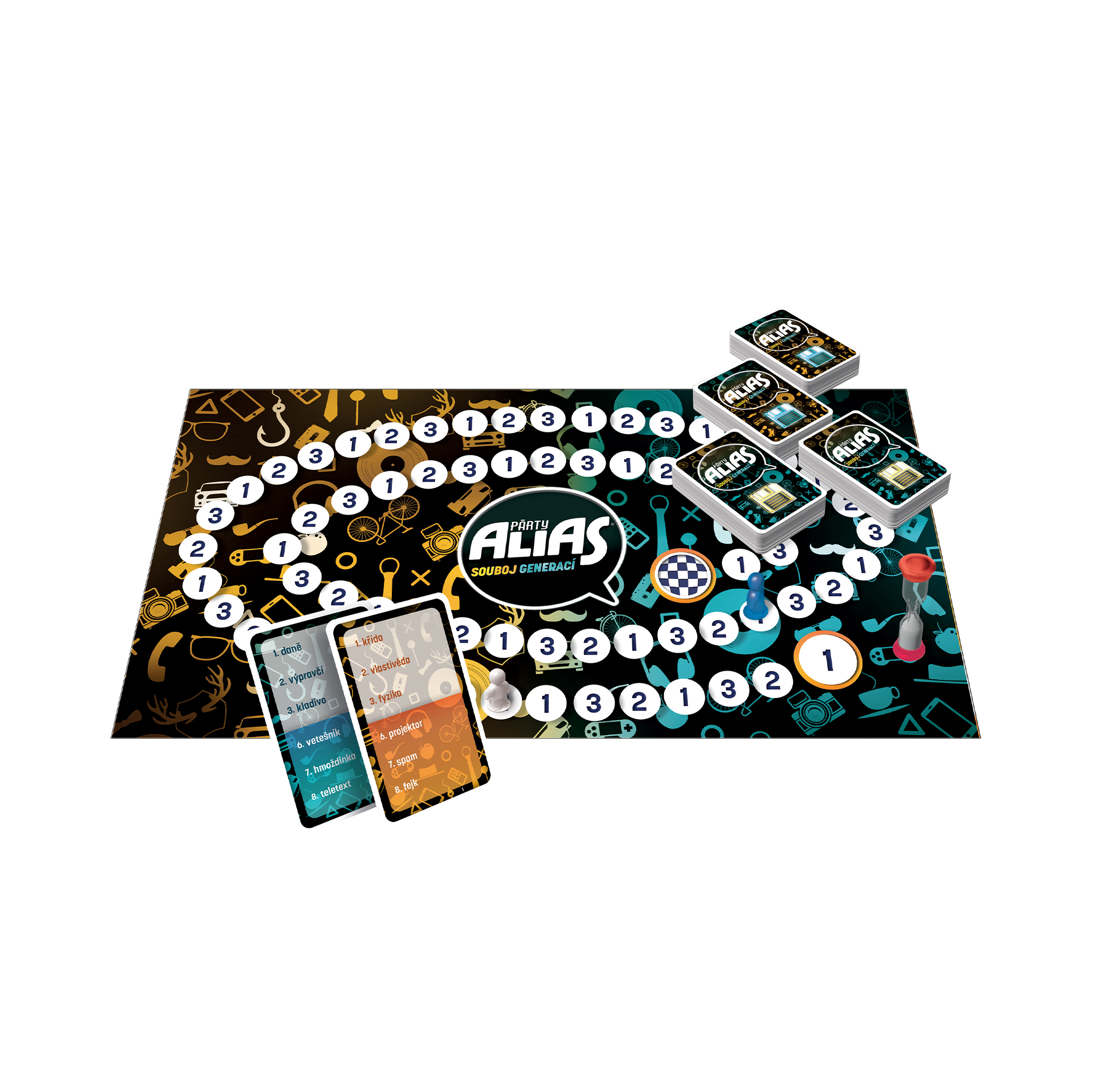 Oblíbená párty hra Párty Alias v nejnovější verzi. Jak již název napovídá, ve hře půjde o souboj generací – tedy rodičů a dětí. Nebo dětí a rodičů? Oproti hrám Párty Alias a Párty Alias Velká sázka je v této verzi pouze mluvení, žádná pantomima, ani kreslení – stejně jako u Párty Alias Ženy versus muži. Jeden z hráčů vysvětluje slovo nebo slovní spojení svému týmu tak, aby ho uhádli a tím se přiblížili k vítězství. Zdá se vám to příliš jednoduché? Tak pozor, má to jeden háček: děti vysvětlují slova ze světa svých rodičů a rodiče vysvětlují slova ze světa dnešních náctiletých. Dokážete se v omezeném čase stručně a jasně vyjádřit? Ukažte, zda dokážete být rovnocennými soupeři! Hra Párty Alias Souboj generací obsahuje: herní plán, 400 karet obsahujících 2 400 slov, přesýpací hodiny, 2 figurky a pravidla hry.