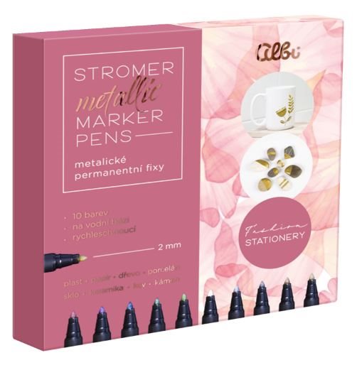 Sada 10 permanentních metalických fixek na vodní bázi. Fixy jsou na rychleschnoucí a dají se použít na mnoho povrchů, jako je dřevo, kámen, kov, plast, sklo, porcelán a další. Vhodné pro všechny umělecké duše. Šířka stopy: 2 mm