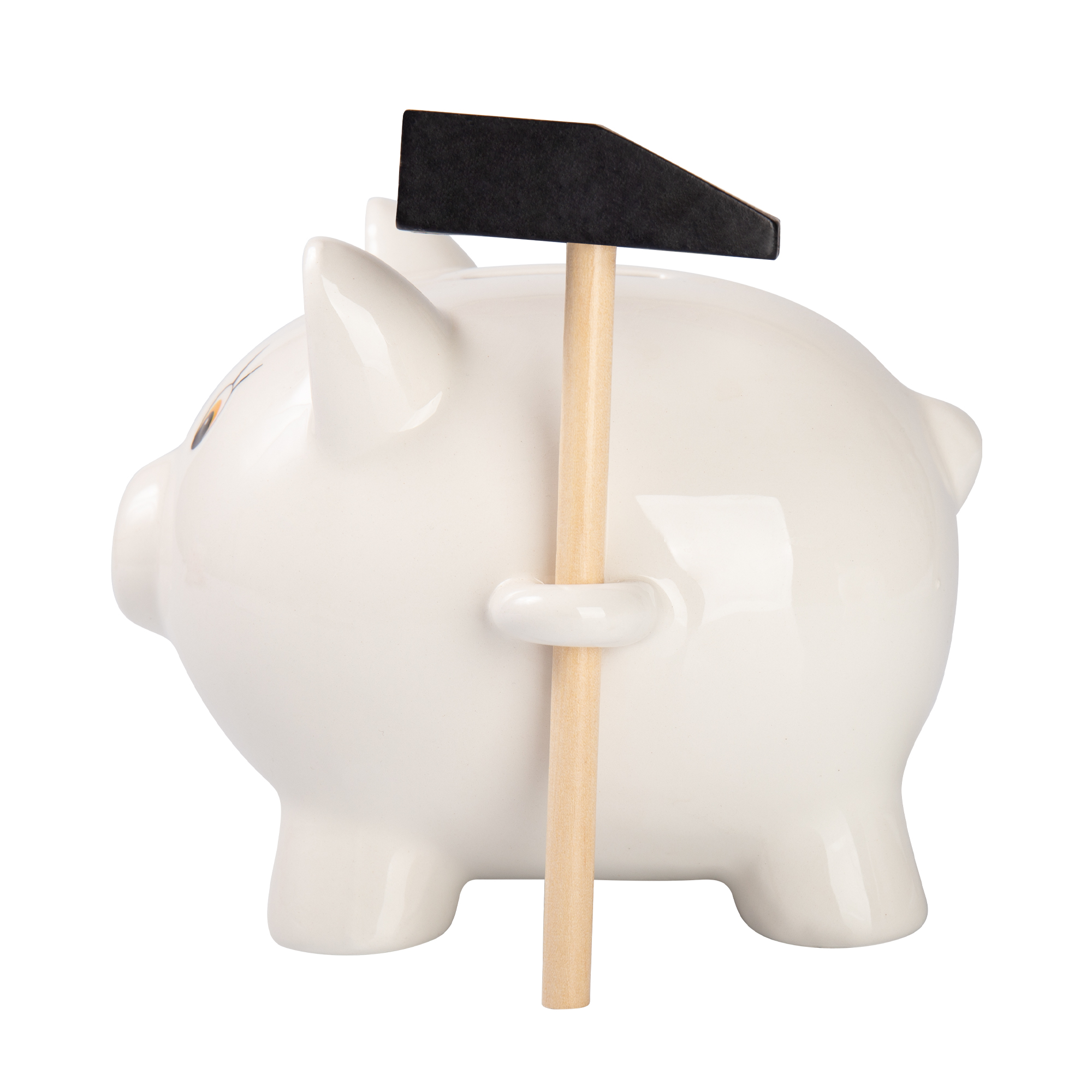 Klasické pokladničky ve tvaru prasátka s milým věnováním potěší všechny šetřílky. Součástí balení je i kladívko, které vás k vytoužené částce nakonec dostane. Prasátkové pokladničky nemají otvor pro vyndavání hotovosti, proto se nemusíte bát, že byste sem tam něco vyndali a hned utratili. Až budete mít našetřený potřebný obnos, stačí vzít kladívko a prasátko rozbít. Pak už je jen na vás, za co naspořené peníze utratíte. Rozměry: 14 cm × 15 cm × 16 cm Materiál: Porcelán