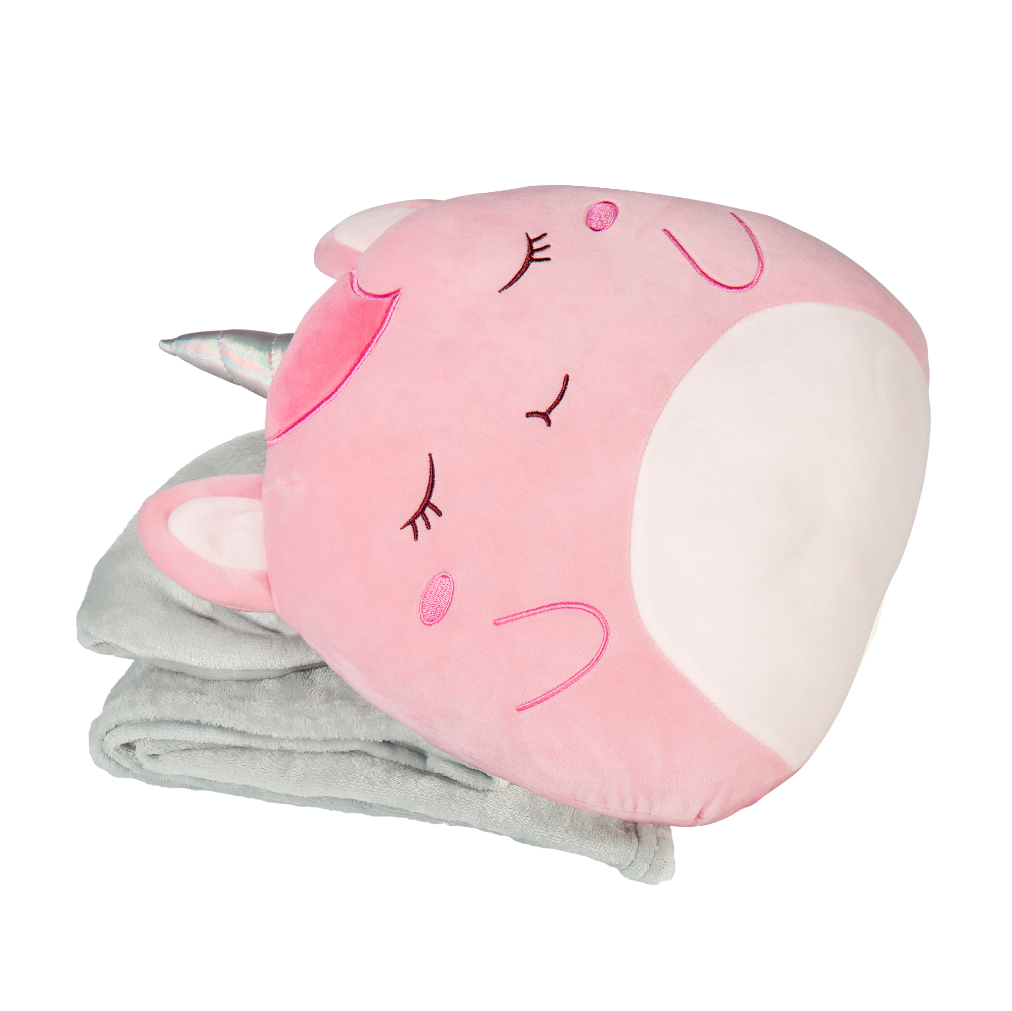 Měkoučký polštář a plyšová deka v jednom! polštáře různých tvarů i šedá plyšová deka jsou vyrobeny z velmi měkkého materiálu, který zaručuje komfortní odpočinek doma i na cestách. Deku lze snadno vyndat ze zadní strany polštářku, čímž vznikne set polštářku a deky. V případě potřeby lze deku opět složit a přeměnit zpět na naducaný polštář, který poslouží i jako plyšák na hraní či dekorace. Polštář a deka 2v1 je skvělý dárek pro děti i dospělé. Rozměry polštáře: 27 × 30 × 15 cm Rozměry deky: 100 × 150 cm Materiál: polštář – 95 % polyester + 5 % elastan; deka – 100% polyester