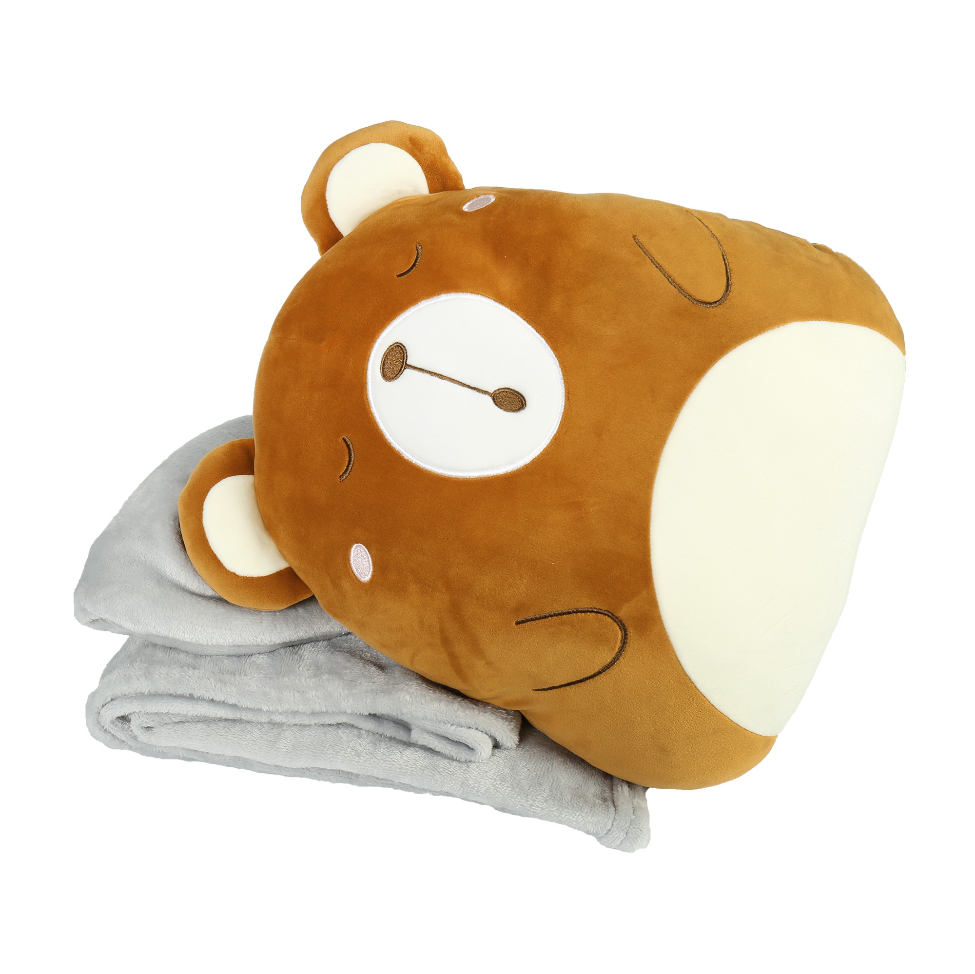 Měkoučký polštář a plyšová deka v jednom! Polštáře různých tvarů i šedá plyšová deka jsou vyrobeny z velmi měkkého materiálu, který zaručuje komfortní odpočinek doma i na cestách. Deku lze snadno vyndat ze zadní strany polštářku, čímž vznikne set polštářku a deky. V případě potřeby lze deku opět složit a přeměnit zpět na naducaný polštář, který poslouží i jako plyšák na hraní či dekorace. Polštář a deka 2v1 je skvělý dárek pro děti i dospělé. Rozměry polštáře: 27 × 30 × 15 cm Rozměry deky: 100 × 150 cm Materiál: polštář – 95 % polyester + 5 % elastan; deka – 100% polyester