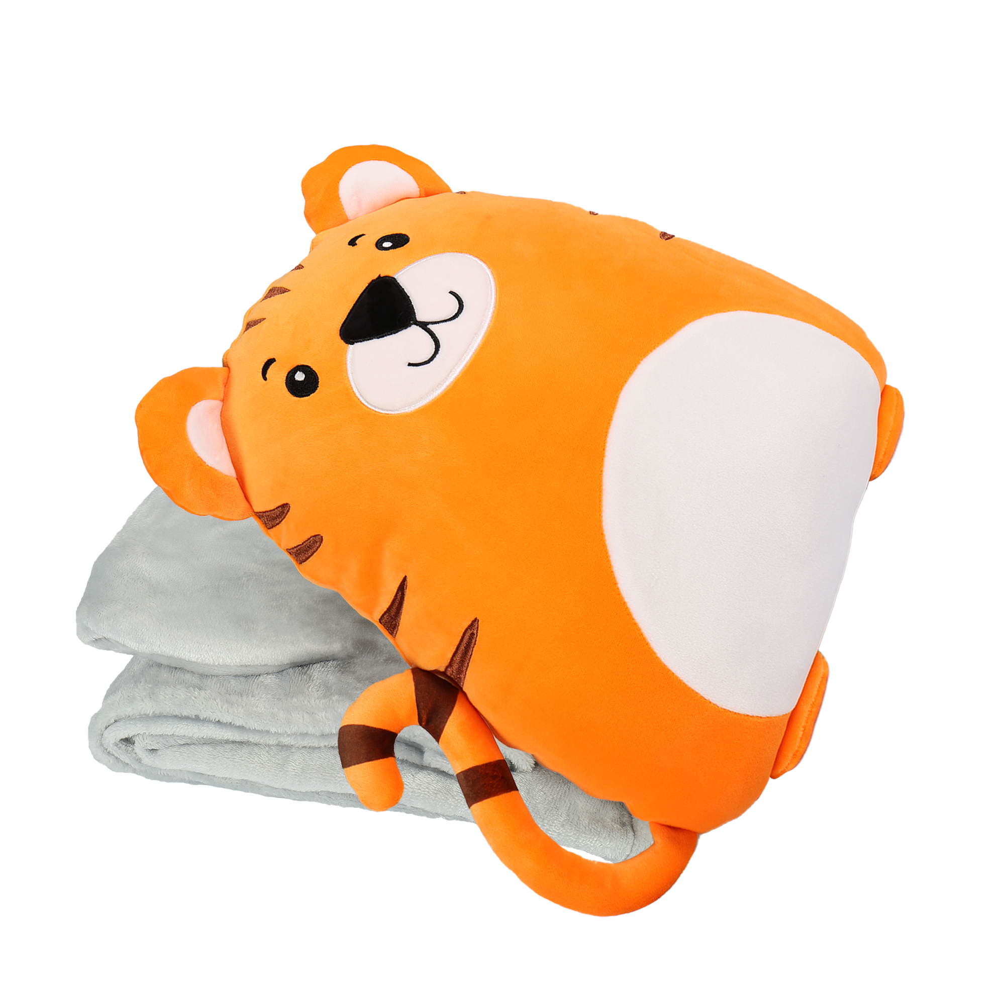 Měkoučký polštář a plyšová deka v jednom! Polštáře různých tvarů i šedá plyšová deka jsou vyrobeny z velmi měkkého materiálu, který zaručuje komfortní odpočinek doma i na cestách. Deku lze snadno vyndat ze zadní strany polštářku, čímž vznikne set polštářku a deky. V případě potřeby lze deku opět složit a přeměnit zpět na naducaný polštář, který poslouží i jako plyšák na hraní či dekorace. Polštář a deka 2v1 je skvělý dárek pro děti i dospělé. Rozměry polštáře: 27 × 30 × 15 cm Rozměry deky: 100 × 150 cm Materiál: polštář – 95 % polyester + 5 % elastan; deka – 100% polyester