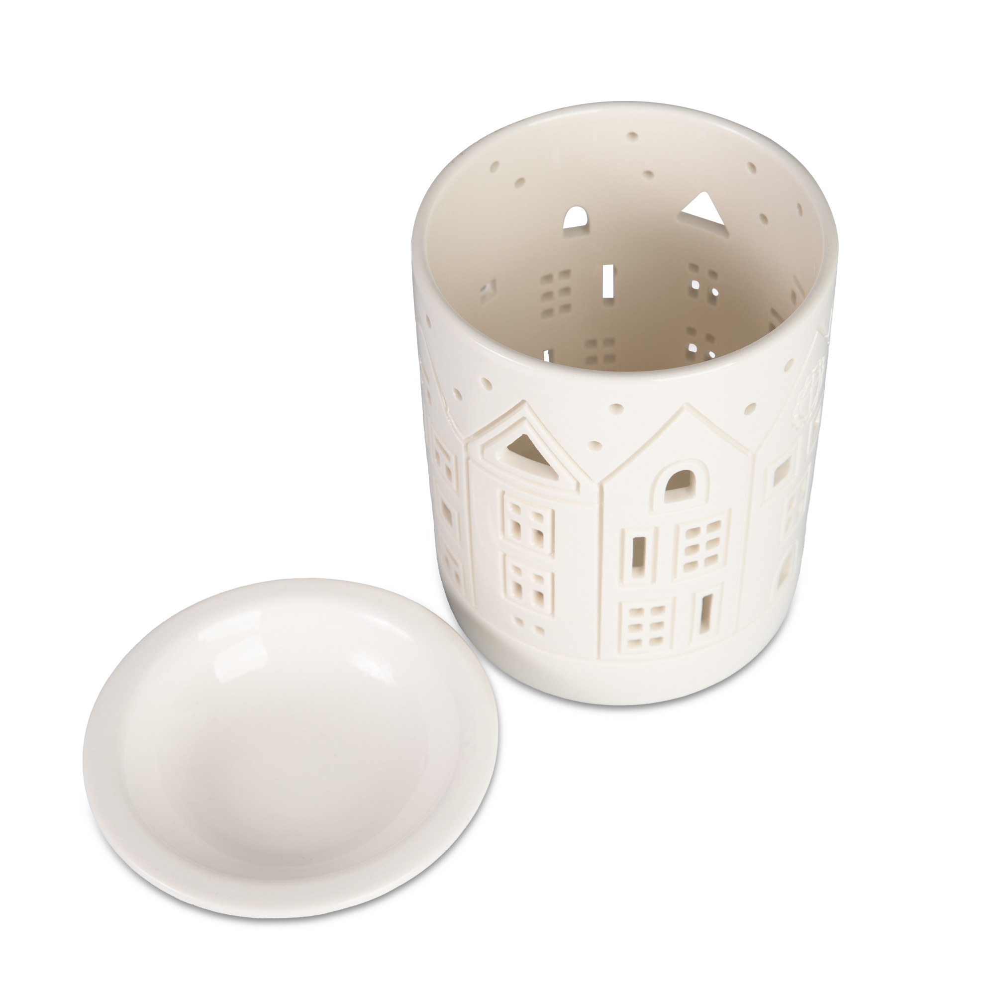 Originální porcelánová aromalampa s různorodými domečky zútulní každý prostor. Stačí přidat vosk nebo vlažnou vodu s několika kapkami oblíbeného esenciálního oleje, zapálit čajovou svíčku a nechat se unášet příjemnou vůní, která zaplní váš prostor. Vytvoříte tak útulnou atmosféru, ideální pro chvíle odpočinku s rodinou nebo čtení oblíbené knihy. Aromalampa je nejen krásným dekoračním prvkem, ale i prostředkem, jak do vašeho domova vnést harmonii. Ideální pro večery plné klidu a sdílených okamžiků s těmi, na kterých vám záleží nejvíc. Materiál aromalampy: porcelán Výška aromalampy: 13,5 cm Průměr aromalampy: 10,5 cm Upozornění: Ujistěte se, že lampa je umístěna na rovném, stabilním povrchu. Do misky vložte vosk pro aromalampy nebo nalijte odpovídající množství vlažné vody a nakapejte éterický olej. Pod miskou zapalte neparfémovanou čajovou svíčku. Během užívání může být lampa horká – nedotýkejte se jí, ani ji nepřemisťujte, dokud opět nevychladne. Varování: Uchovávejte mimo dosah dětí a zvířat. Nedotýkejte se aromalampy během používání. Před manipulací nechte aromalampu zcela vychladnout. Nedodržení pokynů a varování může způsobit požár. Prosíme, uschovejte tyto informace pro budoucí použití.
