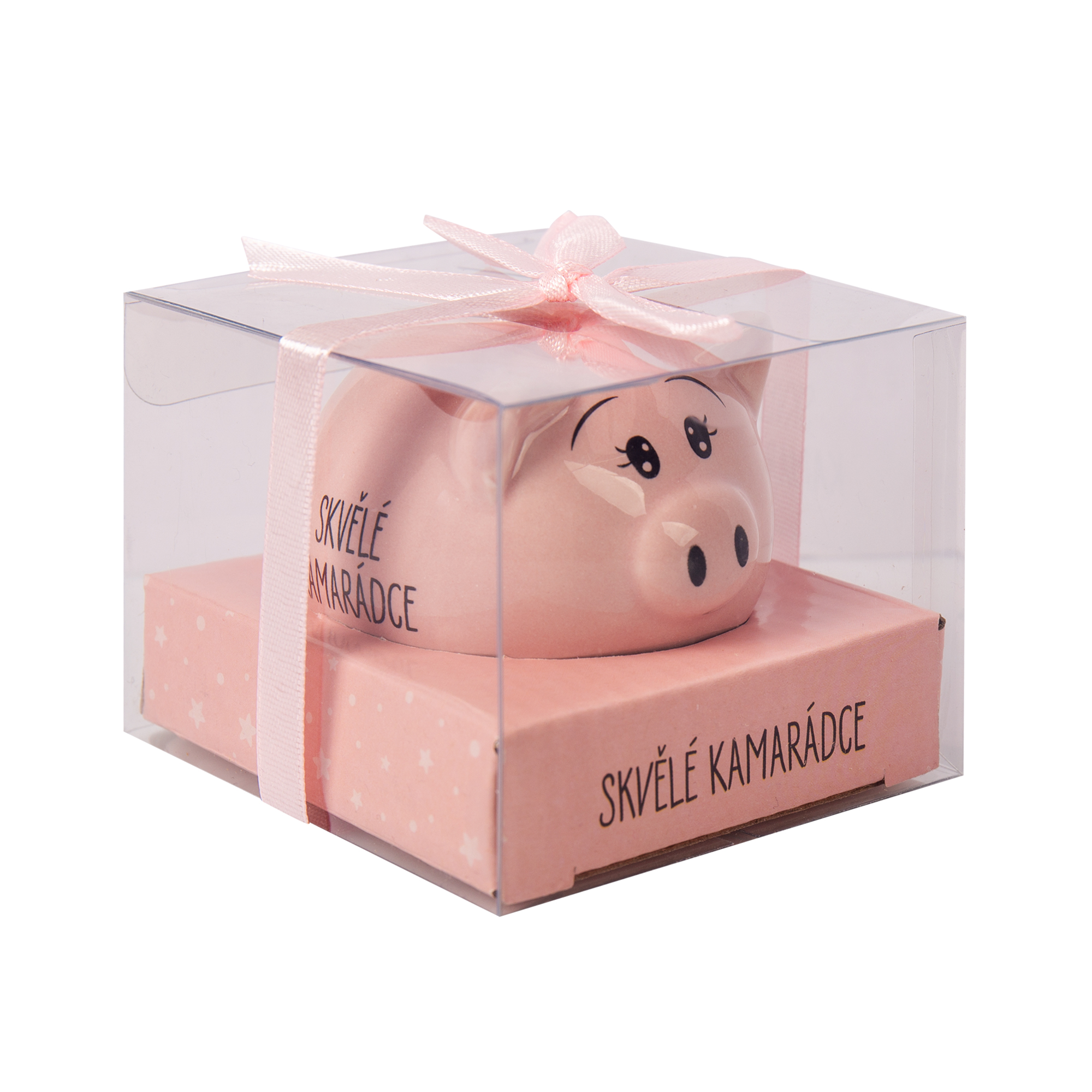 Různě barevné minipokladničky v klasickém tvaru prasátka s milým a vtipným věnování potěší všechny šetřílky. Díky dárkovému balení se stuhou poslouží i jako skvělý dárek. Každé prasátko má na spodní straně bříška otvor pro pozdější vyndavání nastřádaných peněz. Tip: Minipokladničky – Prasátka jsou skvělým tipem, jak darovat peníze – stačí je ukrýt do prasátka a máte hotovo. Rozměry balení: 7,5 cm × 6 cm × 8,5 cm