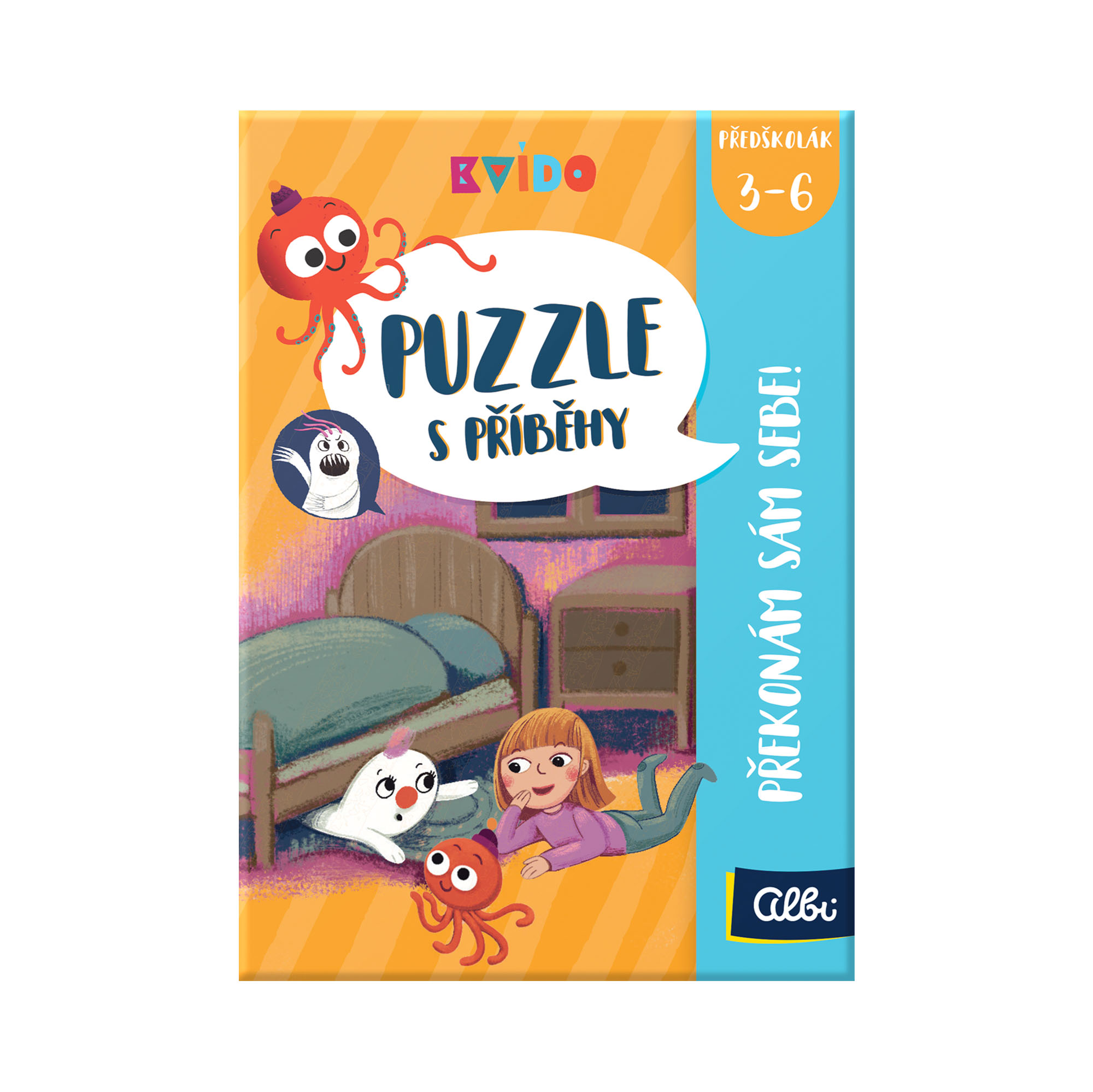 Užijte si společné chvilky s dětmi a přečtěte jim poutavé příběhy, které si děti poté budou moci samy převyprávět, zatímco se pokusí poskládat puzzle s obrázky tak, aby na sebe obrázky logicky navazovaly. Již děti od 3 let si tak potrénují paměť a pozornost, komunikační dovednosti, zvládání emocí a logické uvažování. Puzzle s příběhy – Překonám sám sebe obsahuje: 24 dílků puzzle (pro každý příběh 8 ks) a knížku se třemi příběhy (Bára a bubák Bambula, Marek nechce do školky a Kuba nerad prohrává).