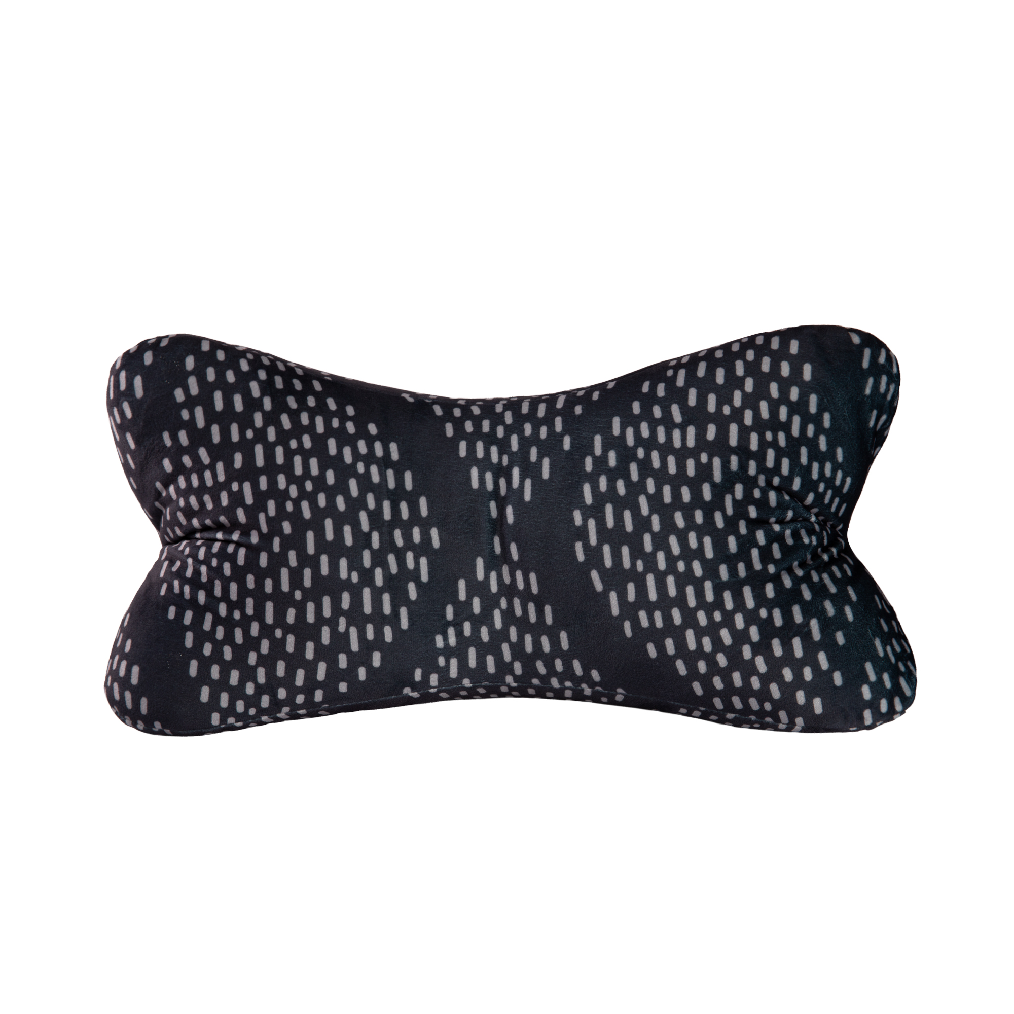Měkký, relaxační polštářek ve tvaru kosti zajišťuje maximální pohodlí díky ergonomickému tvaru, který podporuje zdravé držení těla při ležení i sezení. Tmavý polštář se strakatým vzorem má všestranné využití jako pohodlná opora zad, podpora krku, pohodlná opora při ležení na břiše nebo jako držák čtečky, tabletu či knížky. Materiál: 96% polyester, 4% elasten. Rozměry: 42 × 20 × 20 cm