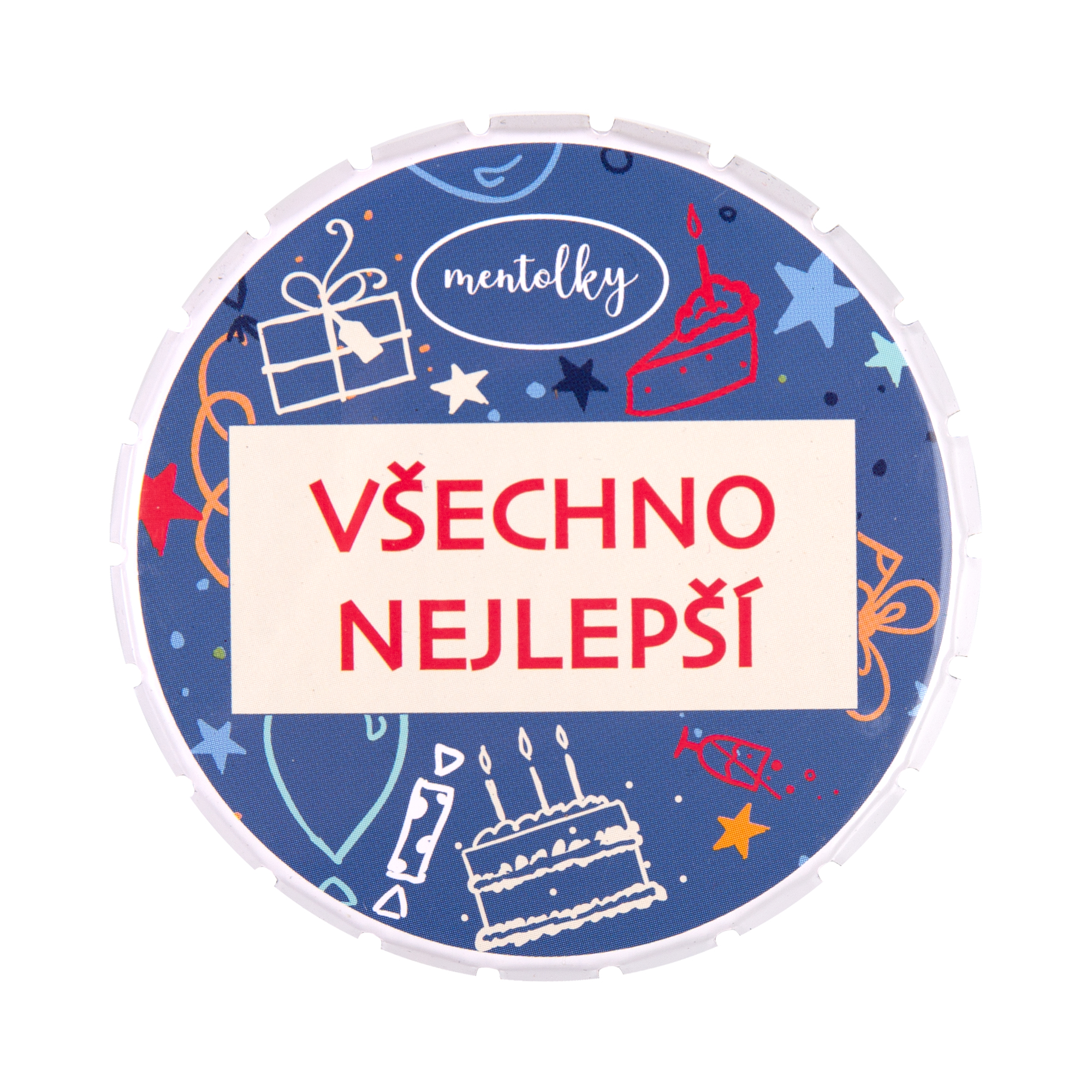 retro mentolky s věnováním jsou osvěžující bonbóny s příchutí máty peprné. Milá i vtipná věnování udělají z mentolek perfektní drobnost se kterou zaručeně potěšíte všechny své blízké. Mentolky neobsahují cukr, jsou slazené náhradními sladidly. Rozměry: 6,5 × 6,5 × 4,3 cm Komprimát bez cukru s příchutí máty peprné, se sladidly Složení: sladidlo: sorbitol; aromata; protispékavá látka: hořečnaté soli mastných kyselin; sladidla: asportam, acesulfam K; koncentrát spiruliny Výživové údaje na 100 g: Energetická hodnota: 1017 kJ/244 kcal tuky: 0,9 g z toho nasycené mastné kyseliny: 0,9 g sacharidy: 97 g z toho cukry: <0,5 g polyalkoholy: 95 g bílkoviny: <0,5 g sůl: <0,01 g Upozornění: Nadměrná konzumace může vyvolat projímavé účinky. Obsahuje zdroj fenylalaninu. Uchovejte v suchu a při pokojové teplotě.