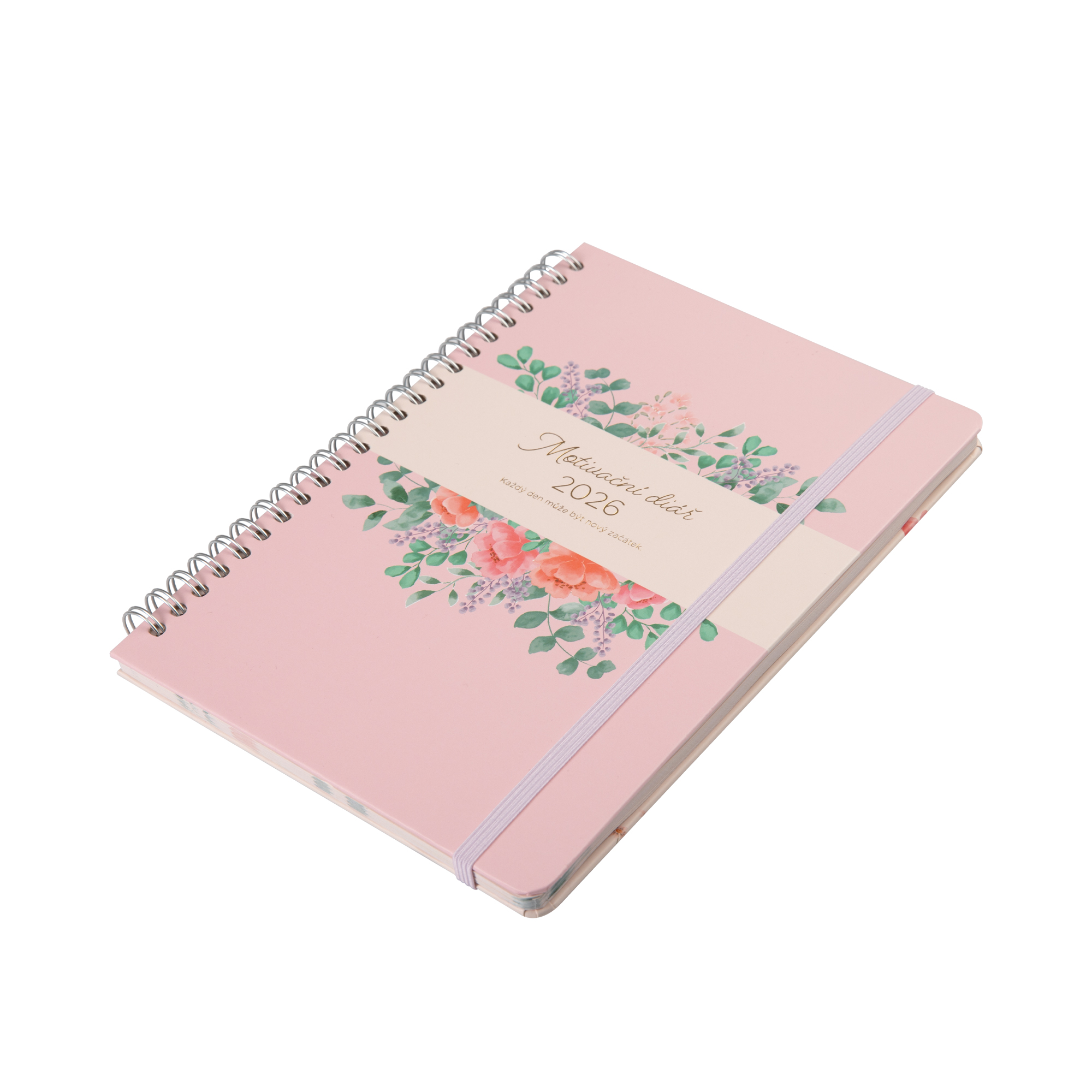 Plánujte do detailů s velkými kroužkovými motivačními Albi diáři na rok 2026. Diáře mají barevné týdenní kalendárium s citátem pro každý týden. V diářích s květinovými designy je také přehled roku 2026 a 2027, měsíční plánovač (pro rok 2026 i 2027), státní svátky, astrologický a narozeninový kalendář, místo pro poznámky (4 stránky). Motivační diáře mají kulaté rohy, něžné květinové barevné kalendárium, zavírání na gumičku a každý týden prostor na zápis toho, čeho v týdnu chcete dosáhnout a na co se těšíte. Velikost: A5 Rozměry: 15 × 21 × 1 cm