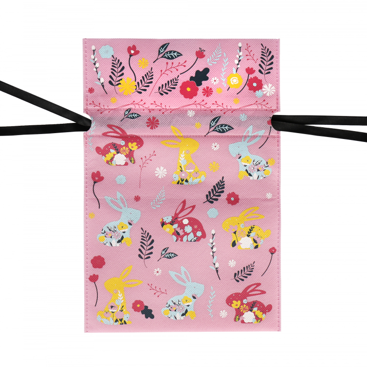 Velikonoce jsou svátky jara, kdy během příprav na Velikonoční pondělí pleteme pomlázky, barvíme vajíčka a těšíme se na koledování. Připravte nejmenším koledníkům velikonoční výslužku od zajíčka. Naplňte jim pytlík dobrotami, které mají rádi. Materiál: netkaná textilie Rozměry: 20 cm × 30 cm