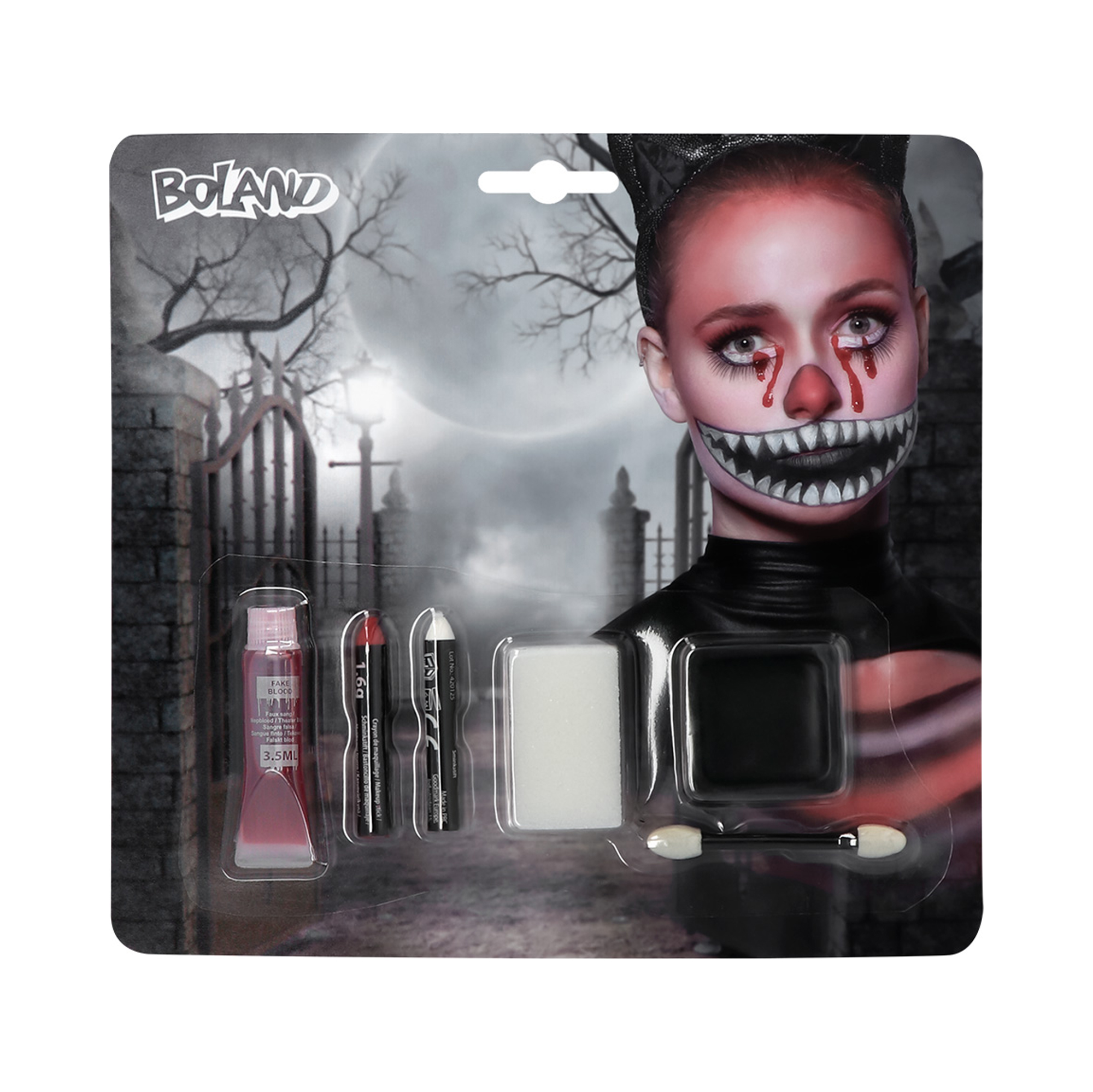 Párty sada barev na obličej i tělo. Vhodné na tematické párty ve stylu Halloween či Čarodějnice, karnevaly, oslavy či festivaly. Tento oblíbený párty doplněk kombinujte s dalšími dekoracemi v sekci kostýmové doplňky a kostýmy. Sada obsahuje štěteček, houbičku, bílou tužku, červenou tužku a černou barvu o objemu 2g a umělou krev o objemu 3,5 ml. Barvy lze snadno s pomocí vody odstranit z pokožky.