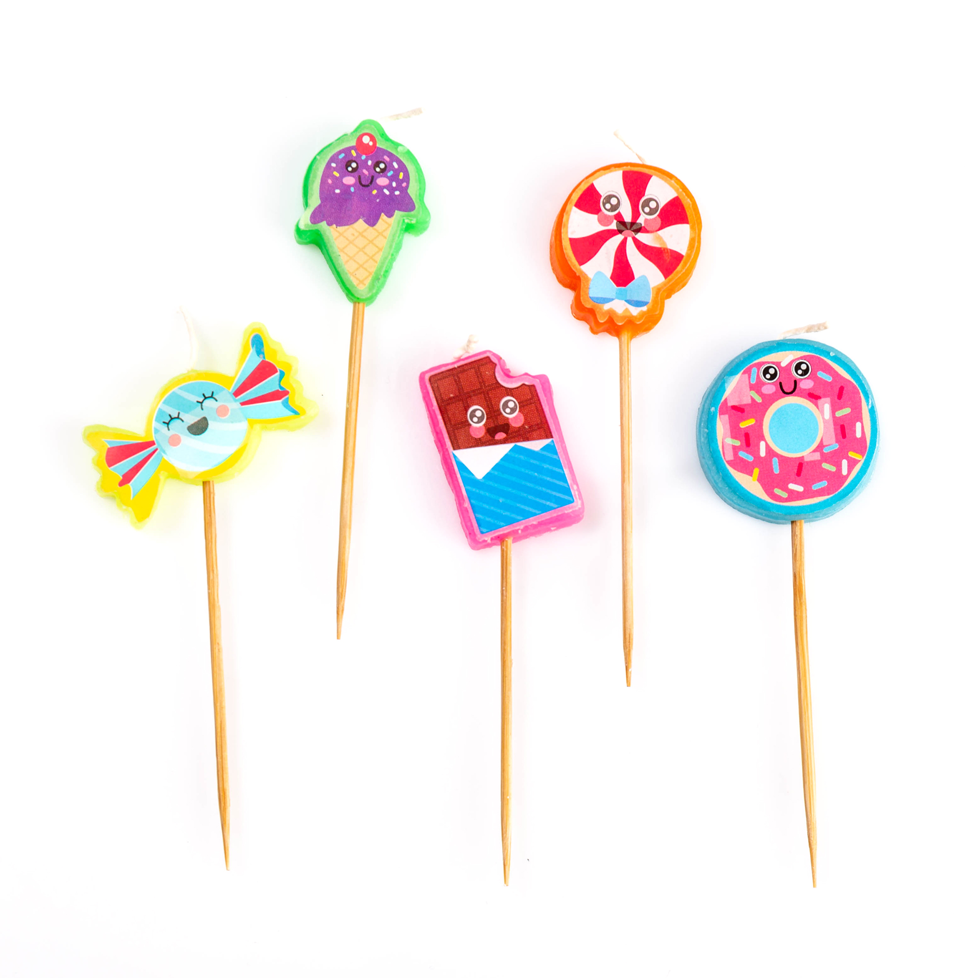 Dortové svíčky s veselými motivy jsou vhodné pro slavnostní okamžiky jako jsou narozeniny, dětské oslavy a tematické párty. Postup: Svíčky zapíchněte do dortu nebo do jiného měkkého podloží a před zapálením zkontrolujte zda směřují vzhůru. Upozornění: Doporučujeme produkt zapalovat ve volném, nejlépe větraném prostoru a v dostatečné vzdálenosti od stojících osob. Jako u všech hořlavin je třeba důsledně dbát na bezpečnost! Sada obsahuje: 5 svíček s daným motivem