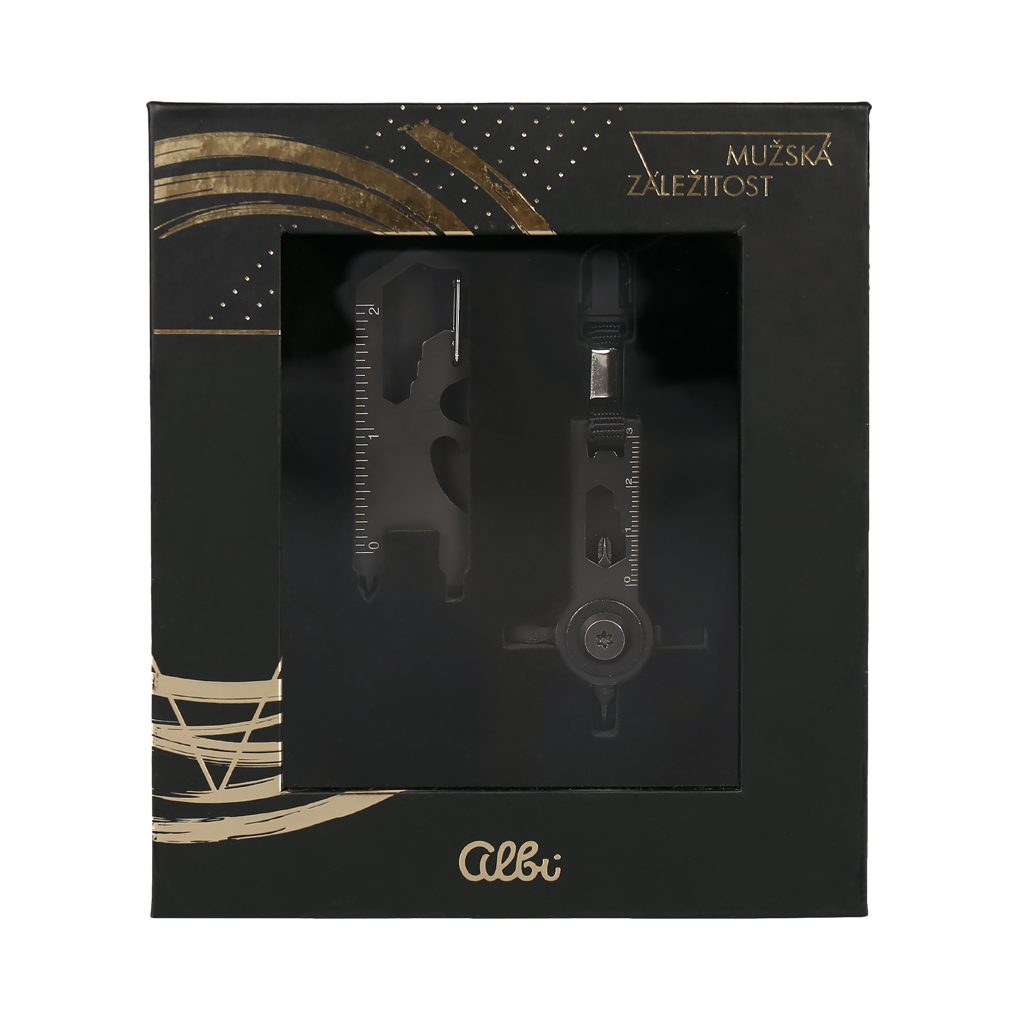 Najít dárek pro muže není kolikrát lehký úkol. Namísto 28. sprchového gelu se raději inspirujte v kolekci Mužská záležitost od Albi. Jednotný design dovoluje produkty navzájem kombinovat, a tak vždy vyberete ten nejlepší dárek. Doma i na cestách každý dobrodruh ocení pořádnou mužskou výbavu. Sada mini šroubovák obsahuje velký křížový šroubovák, malý křížový šroubovák, malý plochý šroubovák, velký plochý šroubovák. Součástí sady je mini multifunkční karta s karabinou. Vyrobeno z odolné nerezové oceli.