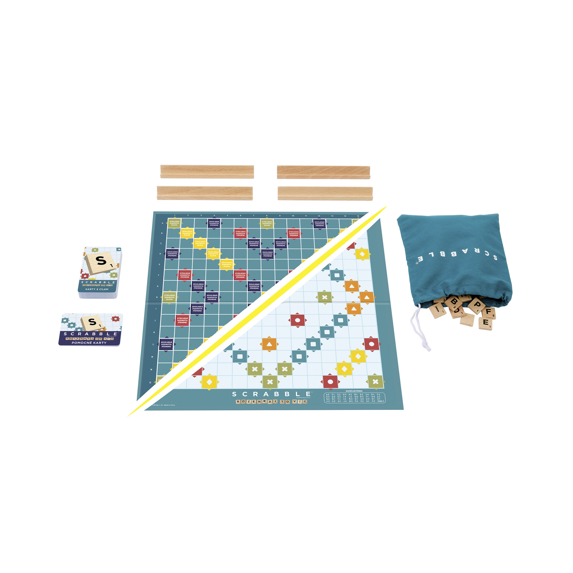 Oblíbená slovní hra Scrabble v elegantním dřevěném provedení! Tato edice obsahuje dřevěné písmenkové kameny a stojánky a kromě klasické hry přináší i druhou, zábavnou variantu. Stačí otočit herní plán a pustit se do rychlejší týmové výzvy, při které hráči společně tvoří slova podle karet s úkoly. Ve hře Scrabble Originál hrajte podle klasických pravidel, která znáte. Skládejte slova, křižujte je a využívejte prémiová pole pro získání nejvyššího skóre. Otočte herní plán a vyzkoušejte moderní, týmovou variantu Scrabble Rozehraj to víc! Je rychlejší, přístupnější a hrajete v ní společně pomocí karet s úkoly. Ideální pro ty, kdo chtějí spolupracovat, ne soupeřit. Tato verze je kompletně v češtině. Hra je určena pro 2–4 hráče od 8 let. Barvy a vzhled výrobku se mohou lišit. Hra Scrabble dřevěná edice CZ obsahuje: 1 oboustranný herní plán, 100 dřevěných kamenů s písmeny, 4 dřevěné stojánky (zásobníky), balíček akčních karet (pro hru „Rozehraj to víc!“) a pravidla hry.