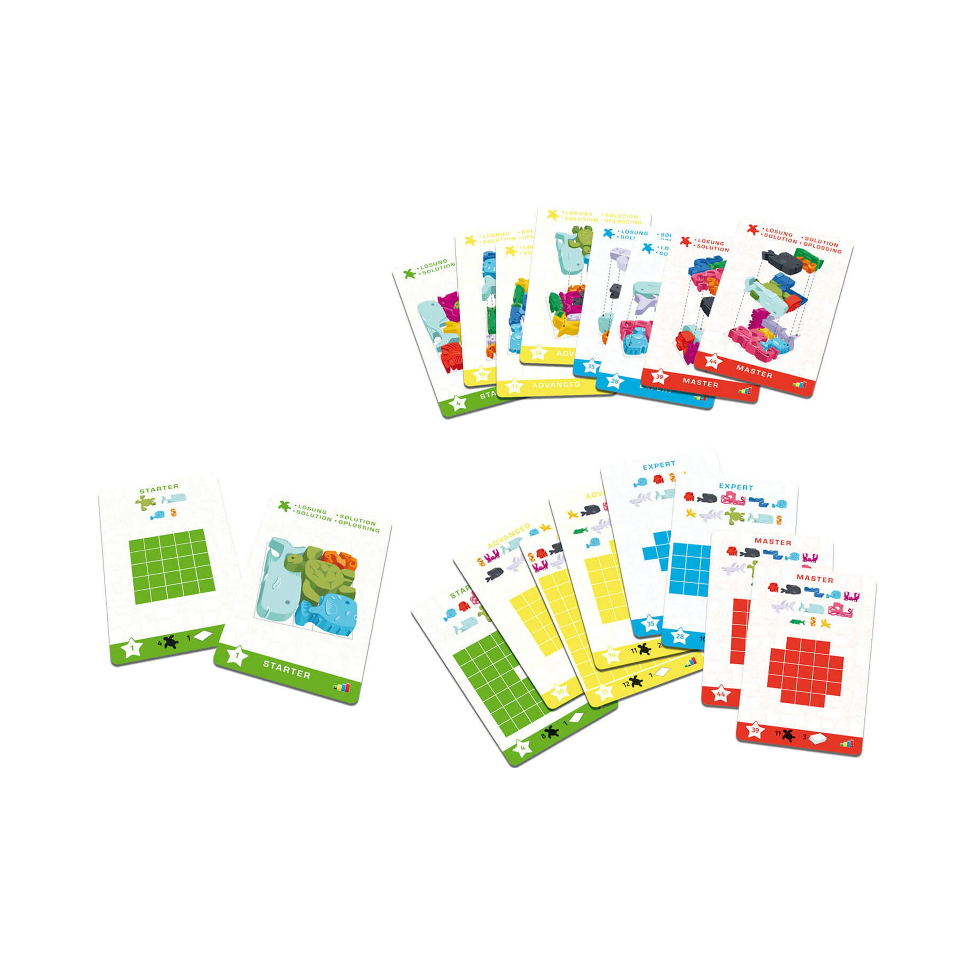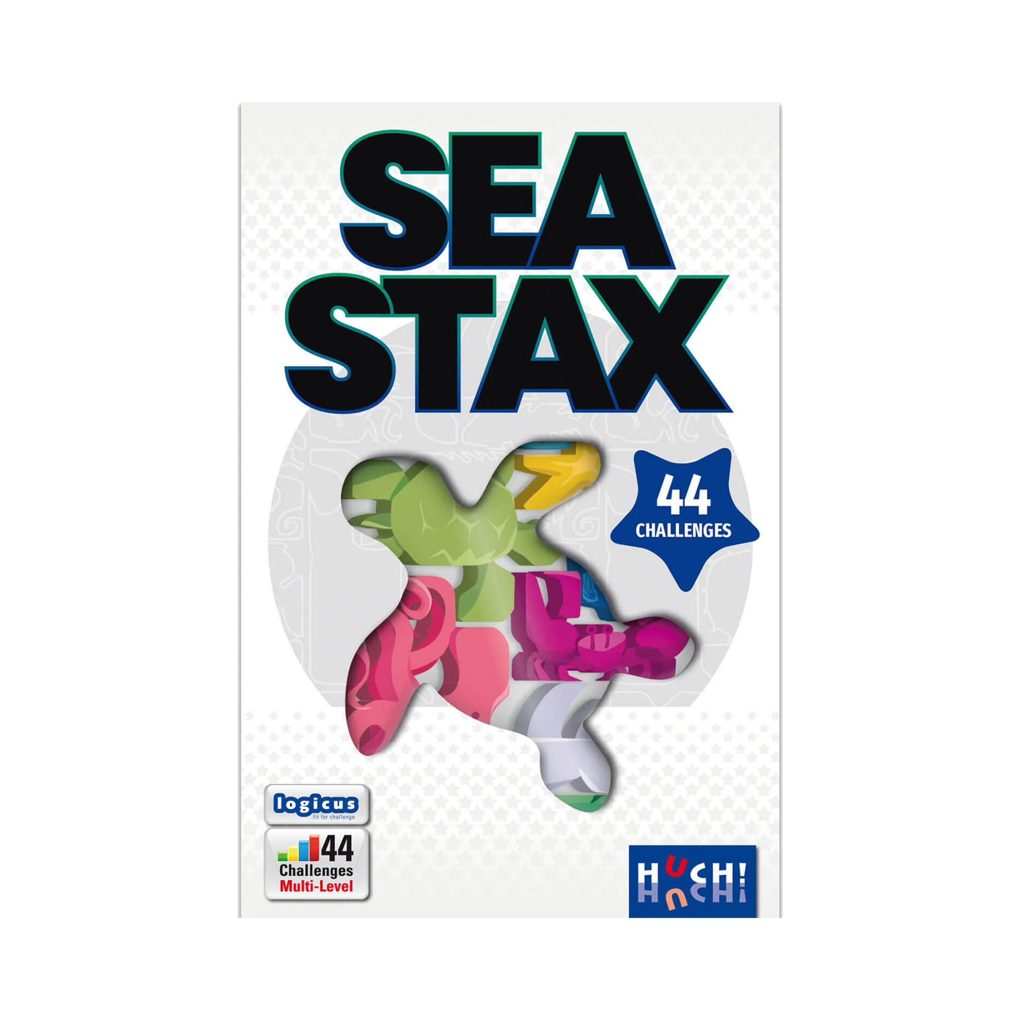 The deep sea puzzle adventure awaits logic and puzzle artists! Colorful fish, seahorses, octopuses and sharks frolic in the box and want only one thing: to be perfectly stacked, clinging to each other, cuddling, and taking their place on the Challenge Card. So take a deep breath, choose a challenge, and dive in! The cards show different levels of difficulty as well as the sea creatures to select to solve the challenge. Can you arrange the sea creatures so that they fit perfectly into the grid? Sea Stax contents: 48 puzzles, 48 solutions, 12 sea animals, travel box, instruction.