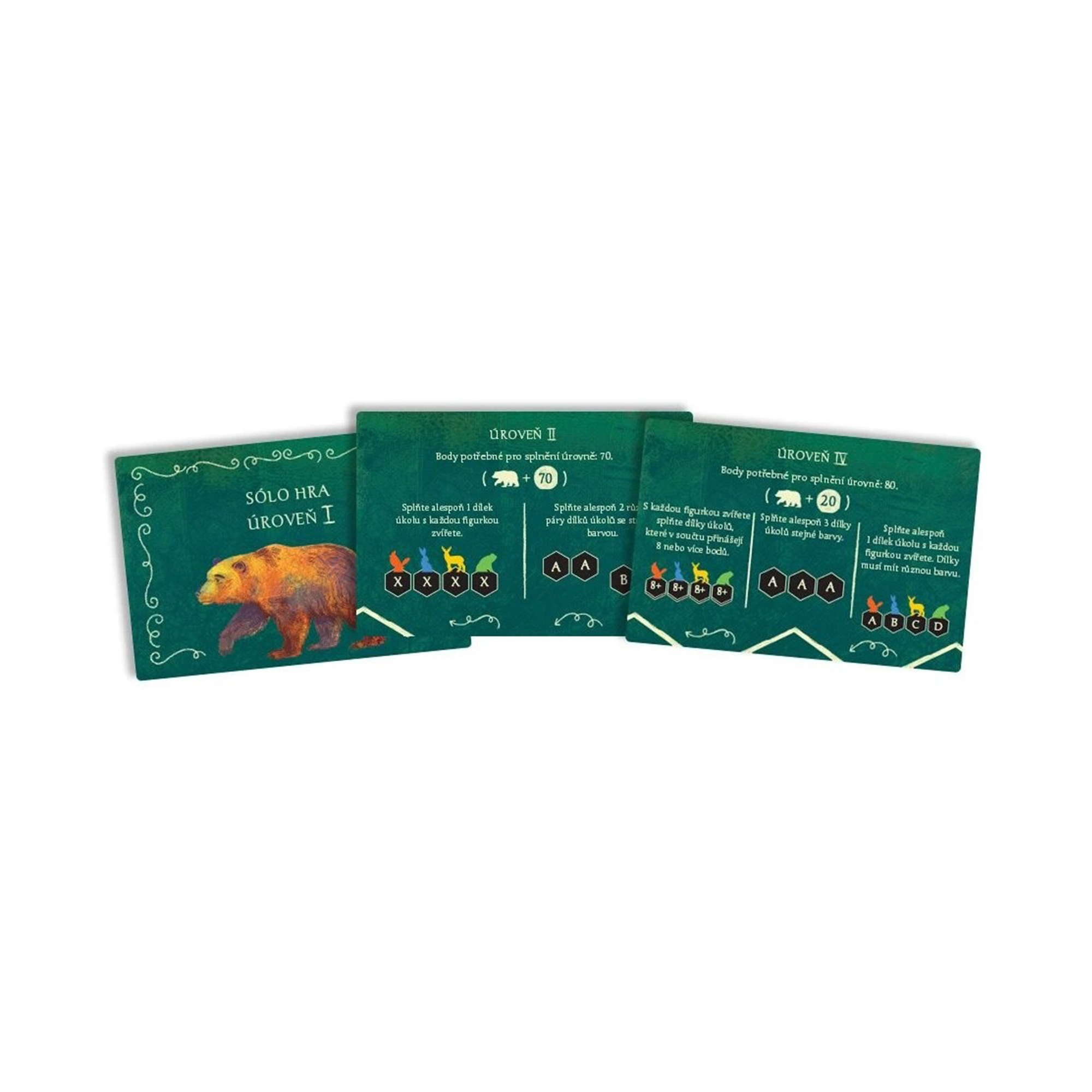 Šeptající les je kouzelné místo, kde spolu v harmonii žijí magická zvířata. Princip je jednoduchý – vyberte si z nabídky dílky, které rozšíří váš les, plňte úkoly procházením po lesních cestičkách, plňte více úkolů v 1 tahu a spouštějte komba. Hluboko mezi stromy je skryt svět plný magie a tajemství, ale také výzev a hrozeb, ve kterém může mít každá chyba nedozírné následky. Pozorně naslouchejte hlasům lesa, dovedou vás k vítězství. Šeptající les nabízí i sólovou variantu hry. Hra Šeptající les obsahuje: 1 herní plán, 104 dílků, 16 figurek zvířat, 1 žeton začínajícího hráče / solového režimu, 1 bodovou tabulku, 1 blok na zapisování skóre pro 2–6 hráčů, 6 startovních dílků, 60 úkolových karet, 10 komba karet, 1 desku pro solový režim, 6 karet misí pro solový režim, česká pravidla.