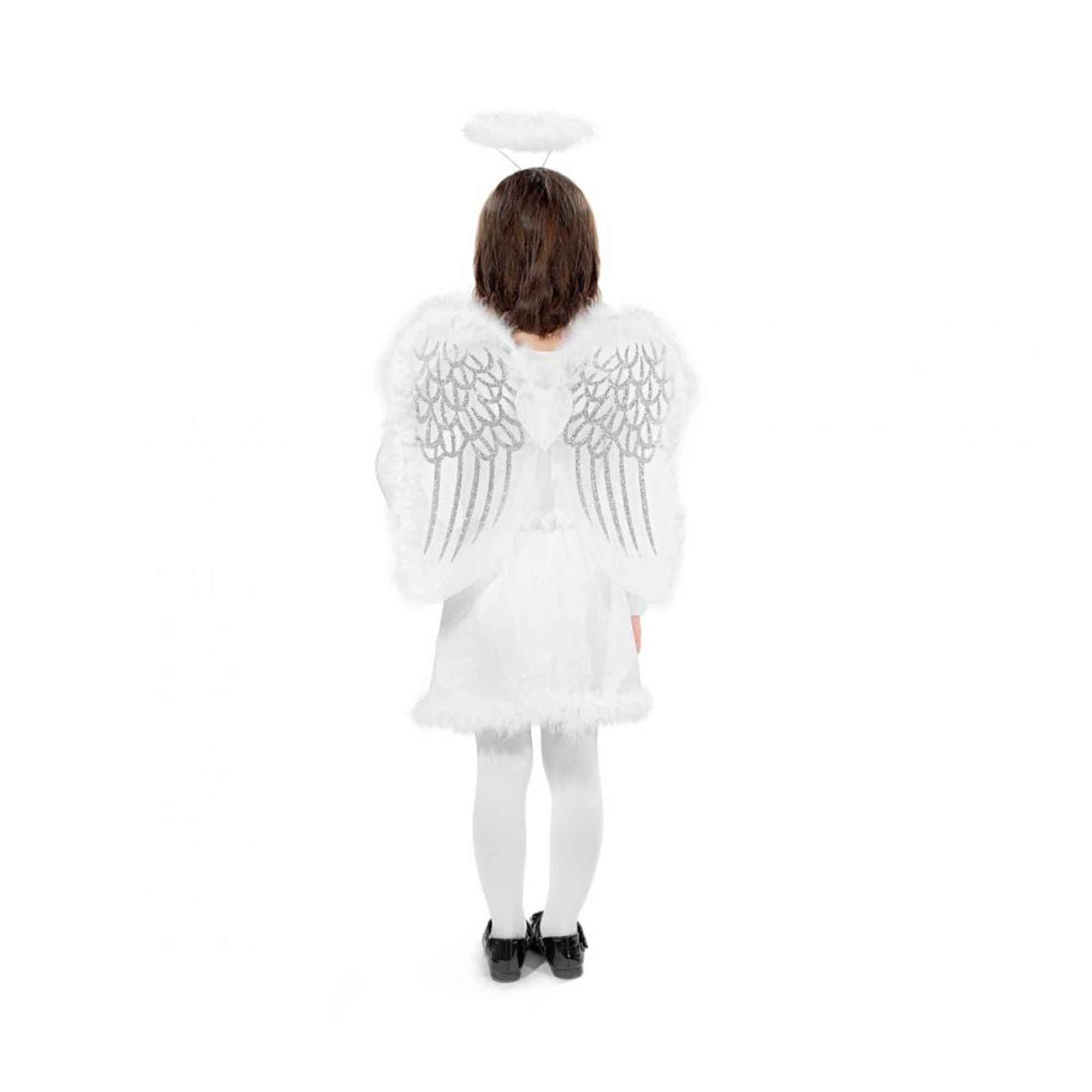 set doplňků k dotvoření kostýmu anděla, který obsahuje 2 kusy – svatozář a křídla. Perfektní volba na tematickou párty, karneval nebo mikulášskou besídku! Tento dětský set je laděný do bílé a stříbrné barvy. Křídla jsou vyrobena z tenké bílé síťoviny, ozdobené chmýřím a stříbrným třpytivým potiskem detailů křídel. Pro další dekorace a kostýmové doplňky v andělském motivu můžete prozkoumat naši kategorii Čert a Mikuláš. Velikost: univerzální (určeno pro děti) Rozměr křídel: 36,5 cm × 48,5 cm Balení obsahuje: čelenku se svatozáří a křídla