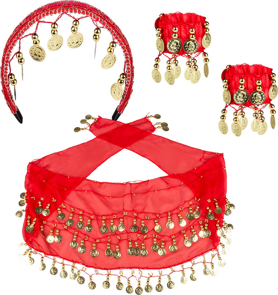 set je ideální doplněk na tematické párty či karnevaly. Tento oblíbený párty doplněk zkombinujte s dalšími dekoracemi v sekci kostýmy. Velikost: univerzální (určeno pro dospělé). Set obsahuje čelenku, náramky a zavazovací opasek s penízky.