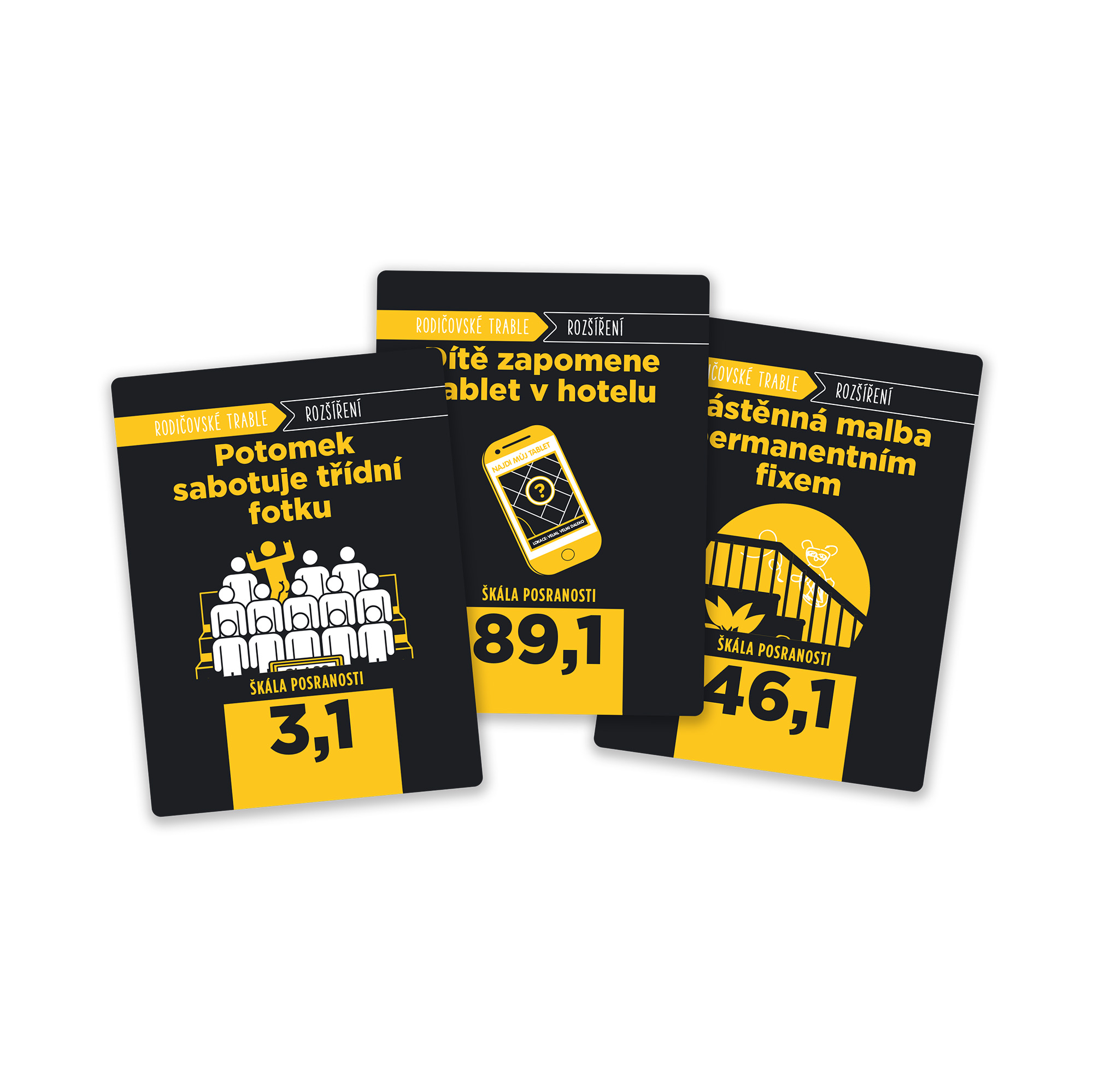 Samostatně hratelné rozšíření hry Shit Happens pro všechny rodiče a nejen pro ně. Přiznejme si to – občas se to sere každýmu, že jo? Tak proč se nad tím aspoň nezasmát. Shit Happens je karetní hra pro všechny fanoušky nekorektního humoru. Na těchto kartičkách si přečtete fakt strašný věci, který pak budete hodnotit podle toho, jak moc jsou na prd. Je vyrážka z plín LEPŠÍ, nebo HORŠÍ, než když si potomek odmítá čistit zuby? Ohodnoťte situaci, a pokud se trefíte na správný místo na naší škále posranosti, můžete si kartu nechat. Když správně ohodnotíte 10 karet, vyhráváte. S těmahle bolestivě pravdivýma kartama můžete hrát samostatně, nebo jestli jste připraveni si nadělat do plínek, přimíchejte je do libovolnýho balíčku hry Shit Happens. Rodičovské trable mají trochu umírněnější karty, takže je věková hranice snížená z 18+ na 13+. Hra obsahuje: 200 karet Shit Happens a nevybíravý pravidla.