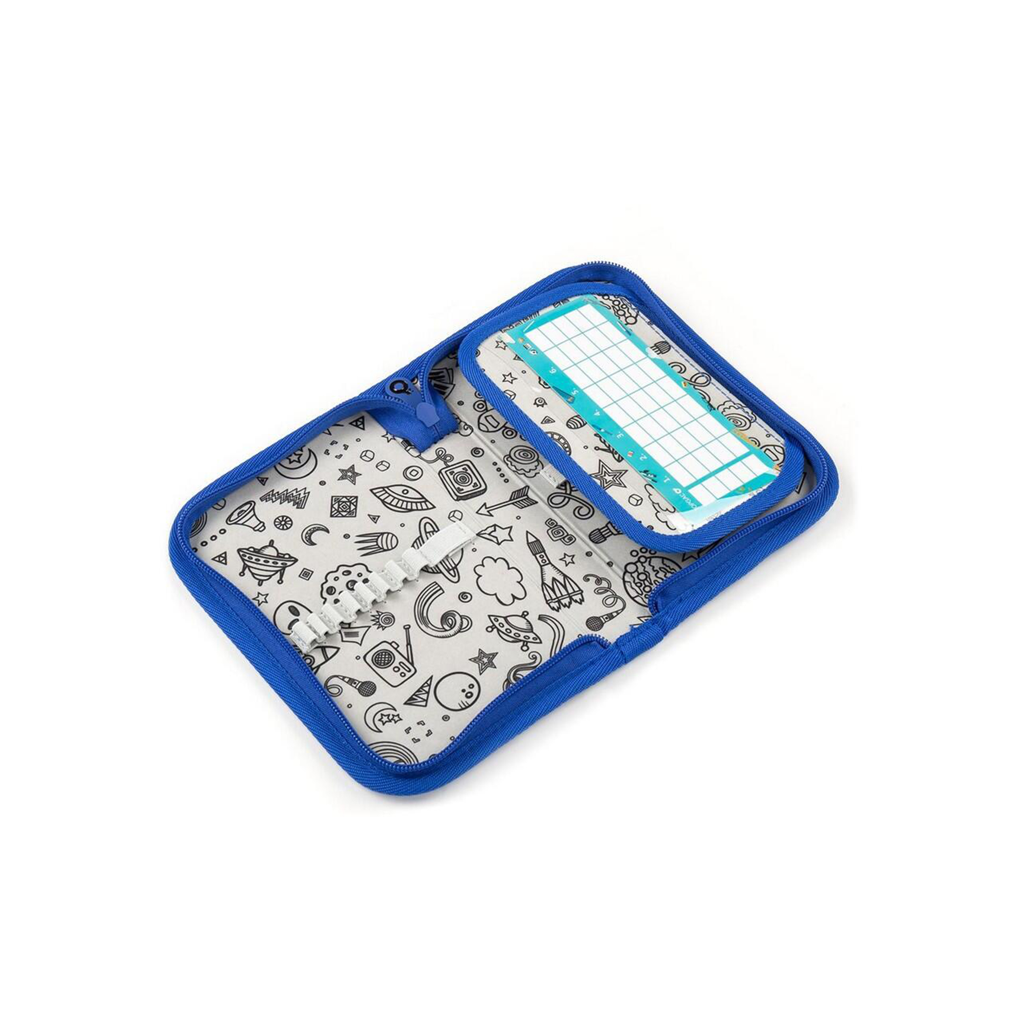 Stylový modro-šedý jednopatrový penál s pixelovým motivem potěší všechny kluky a milovníky Minecraftu, kteří chtějí mít přehled ve svých školních potřebách a zároveň milují kreativitu. Uvnitř se totiž nachází šedá podšívka s obrázky k vybarvení. Penál má 2 klopy a gumové úchyty pro 21 pastelek, tužek či fixů plus 3 širší místa na pravítko, kružítko nebo nůžky a 2 větší úchyty na gumu a ořezávátko. Pod průhlednou folií najdete rozvrh hodin, druhá kapsa na klopě může posloužit jako úložiště na poznámky. Polstrování chrání všechny potřeby, zipy s velkými taháčky usnadňují dětem manipulaci. Penál není vhodný do pračky. Parametry produktu Hmotnost: 200 g Rozměry: 21 × 5 × 14 cm Materiál: 100% polyester
