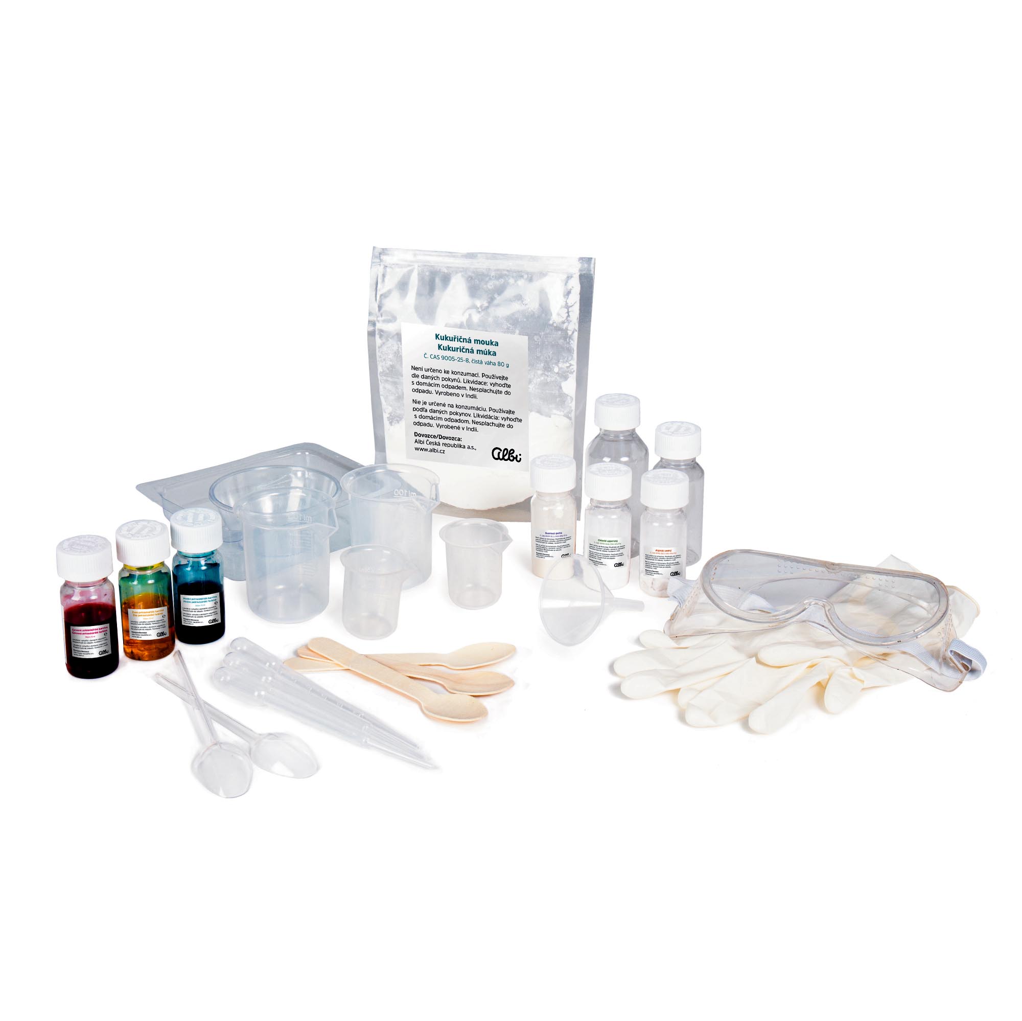 S experimentální sadou Slizová laboratoř z edice Albi Science si můžete vyrobit různé druhy slizu, třeba nechutně tekutý nebo super nadýchaný sliz, a nebo skákající želatinový míček. Víte, z čeho všeho lze sliz vyrobit? Co třeba želatinové bonbóny? Naučte se správně odměřit chemické látky, ať už jsou sypké, nebo kapalné. Dozvíte se, jak správně odměřit kapalinu v případě, že nemáte váhu nebo odměrku. Slizová laboratoř naučí děti od 6 let základům práce v laboratoři a postup při pokusech. A zjistí také třeba, co je to skupenství a viskozita látek. Sada Slizová laboratoř obsahuje: modré potravinářské barvivo 15 ml, žluté potravinářské barvivo 15 ml, červené potravinářské barvivo 15 ml, kukuřičnou mouku 80 g, 2 velké odměrky, 2 malé odměrky, 3 kapátka, ochranné brýle, ochranné rukavice, 3 plastové lžičky, 3 dřevěné lžičky, 2 plastové nádobky, 2 velké odměrky, 2 malé odměrky, 2 lahvičky s uzávěrem, chlorid vápenatý 8 g CAS 10035-04-8, alginát sodný 8 g CAS9005-38-3, guarová guma 10 g CAS 9000-30-3 a návod. UPOZORNĚNÍ: Věnujte pozornost úpravě návodu na skákající míček. Použijte 15ml teplé vody. Míček nechte vyschnout přes noc, poté je připraven ke hře. Kompletní upravený návod je k dispozici v Přílohách ke stažení. K dispozici je také videonávod v galerii. Omlouváme se za případné komplikace při výrobě. Návod bude v dalším dotisku opraven. Doplnění surovin do sad ALBI Science V experimentálních sadách pro děti od ALBI Science najdete určité množství surovin, které vystačí na otestování všech pokusů. Baví vás testovat dál anebo plánujete přizvat kamarády? Pak je potřeba doplnit zásoby. Přinášíme pár tipů, kde suroviny najít. Kukuřičný škrob, guarovou gumu snadno dokoupíte téměř v každých potravinách a prodejnách se zdravou výživou. Navštivte e-shop nebo prodejny Country Life, či https://www.vitalcountry.cz/. Alginát sodný, přírodní extrakt z hnědé řasy pořídíte na e-shopech zaměřených na prodej potravinářských surovin, např. https://www.drhoffmann.cz/ . Pro více ochranných rukavic se zastavte v drogerii nebo lékárně. Ty najdete i v dalších ALBI Crafts&Science sadách, proto vezměte rovnou celý balík. Stáhněte si přehledný nákupní seznam.