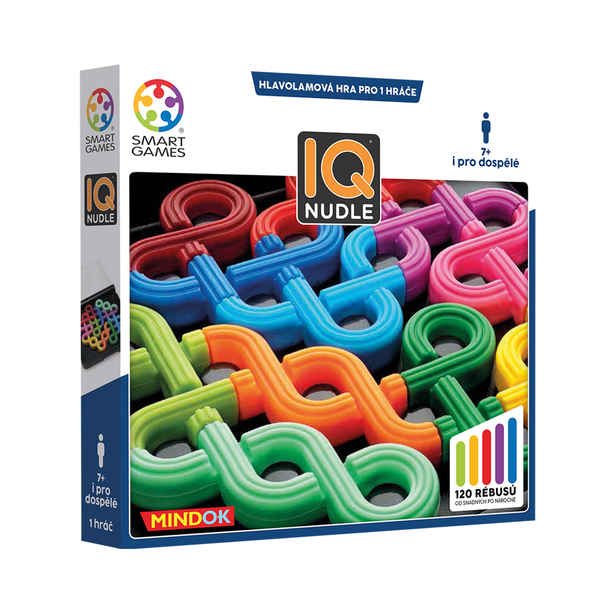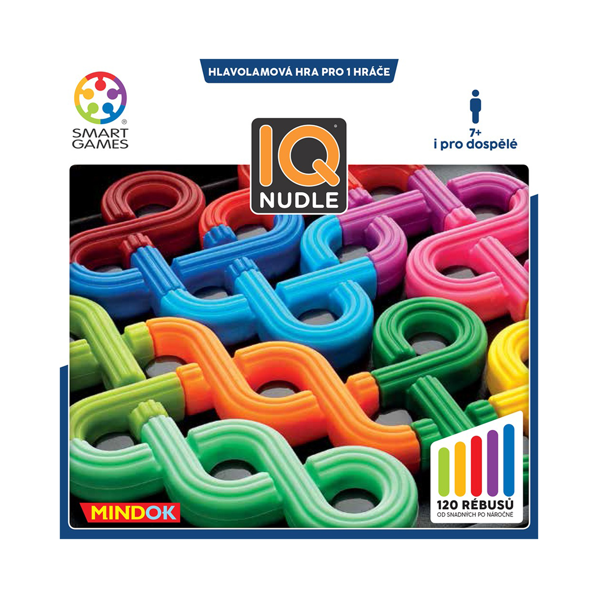 SMART – IQ Nudle je kompaktní hlavolam pro 1 hráče, ve kterém musíte umístit všechny dílky na desku tak, aby na sebe jejich volné konce navazovaly a vytvořily uzavřené smyčky. Vyzvěte svou logiku v úlohách od těch se startovní pozicí až po úroveň MASTER, kde máte k dispozici jen obrys řešení. Každá úloha má pouze jedno správné řešení! Potrénujte mozek doma i na cestách se 120 rébusy o 5 úrovních náročnosti, které trénují koncetraci, logické myšlení a řešení problémů.
