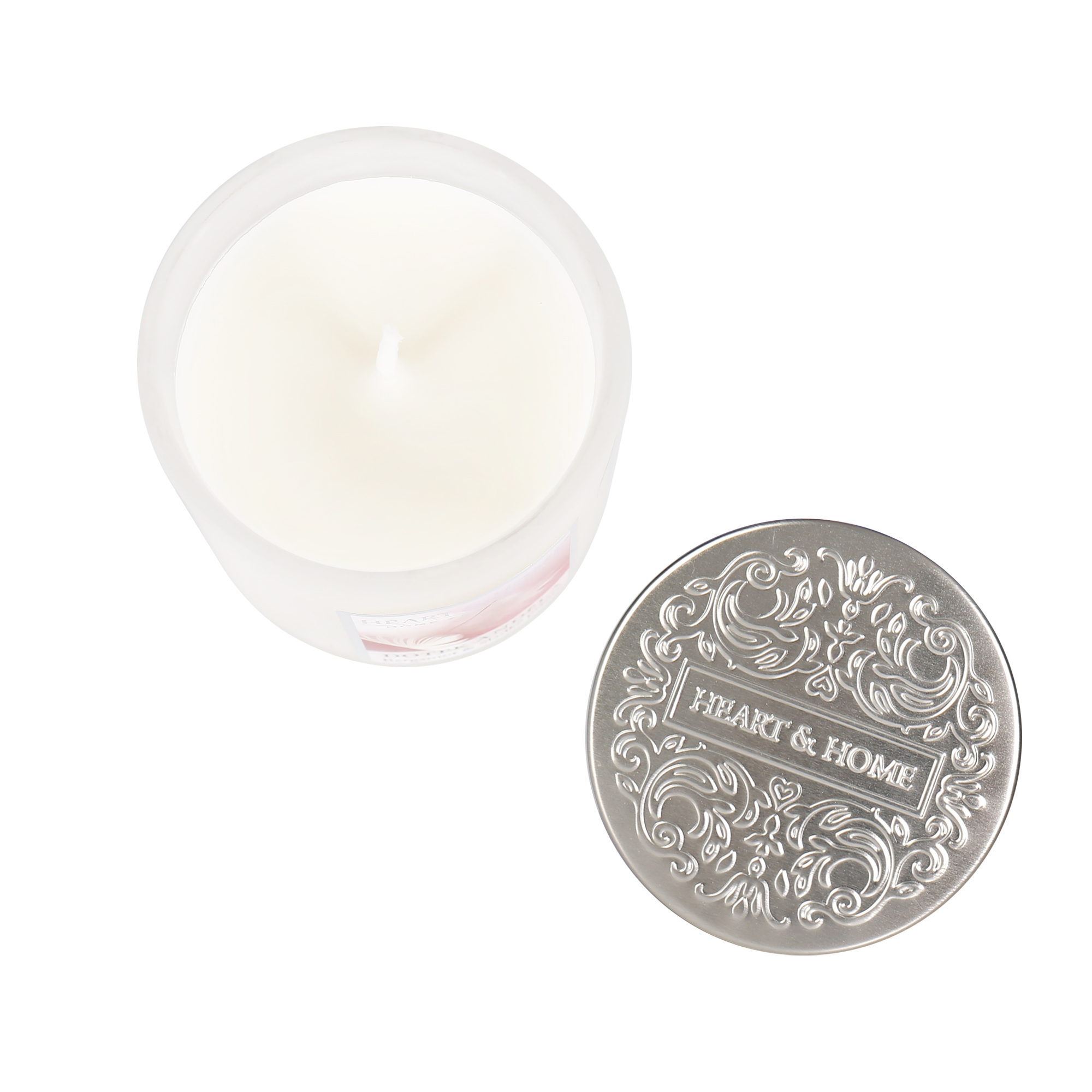 Heart and Home, to je prémiová značka vonných svíček. A proč jsou tyto svíčky tak výjimečné? Vosk pro tyto svíčky byl vyroben ze sójových bobů. Díky tomu jsou svíčky Heart and Home šetrnější a přívětivější k životnímu prostředí, jsou netoxické, a vy tak můžete relaxovat s pocitem, že jste přispěli k tomu, aby naše příroda zůstala krásná. Střední svíčky Heart and Home vydrží hořet až 30 hodin. Na rozdíl od klasických svíček totiž hoří při nízkých teplotách, a tak provoní váš domov na opravdu dlouhou dobu. Díky aromatizovanému vosku budou svíčky vonět i po zhasnutí.  Střední svíčky jsou vhodné především pro běžné, středně velké místnosti. TIP: po dohoření si můžete sklenici nechat a využít ji jako elegantní dózu nebo dekoraci. Hmotnost: 110 g Průměr svíčky: 6,5 cm Výška svíčky: 8 cm Doba hoření: až 30 hodin