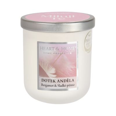 Složení vůně Hlava: bergamot Srdce: citrón Základ: sladké pižmo Střední svíčka prémiové značky Heart and Home se svěží vůní Dotek anděla a milostným věnováním na víčku je tipem na hřejivý dárek pro vaši lásku na Valentýna nebo jen tak. Vosk pro tuto svíčku byl vyroben ze sójových bobů. Díky tomu je svíčka značky Heart and Home šetrnější k životnímu prostředí, je netoxická, a vy tak můžete relaxovat s pocitem, že jste přispěli k tomu, aby naše příroda zůstala krásná. Svíčka vydrží hořet až 30 hodin. Díky aromatizovanému vosku svíčka navíc voní i po zhasnutí, a váš domov tak provoní na opravdu dlouhou dobu. Hmotnost: 110 g Průměr svíčky: 6,5 cm Výška svíčky: 8 cm Doba hoření: až 30 hodin