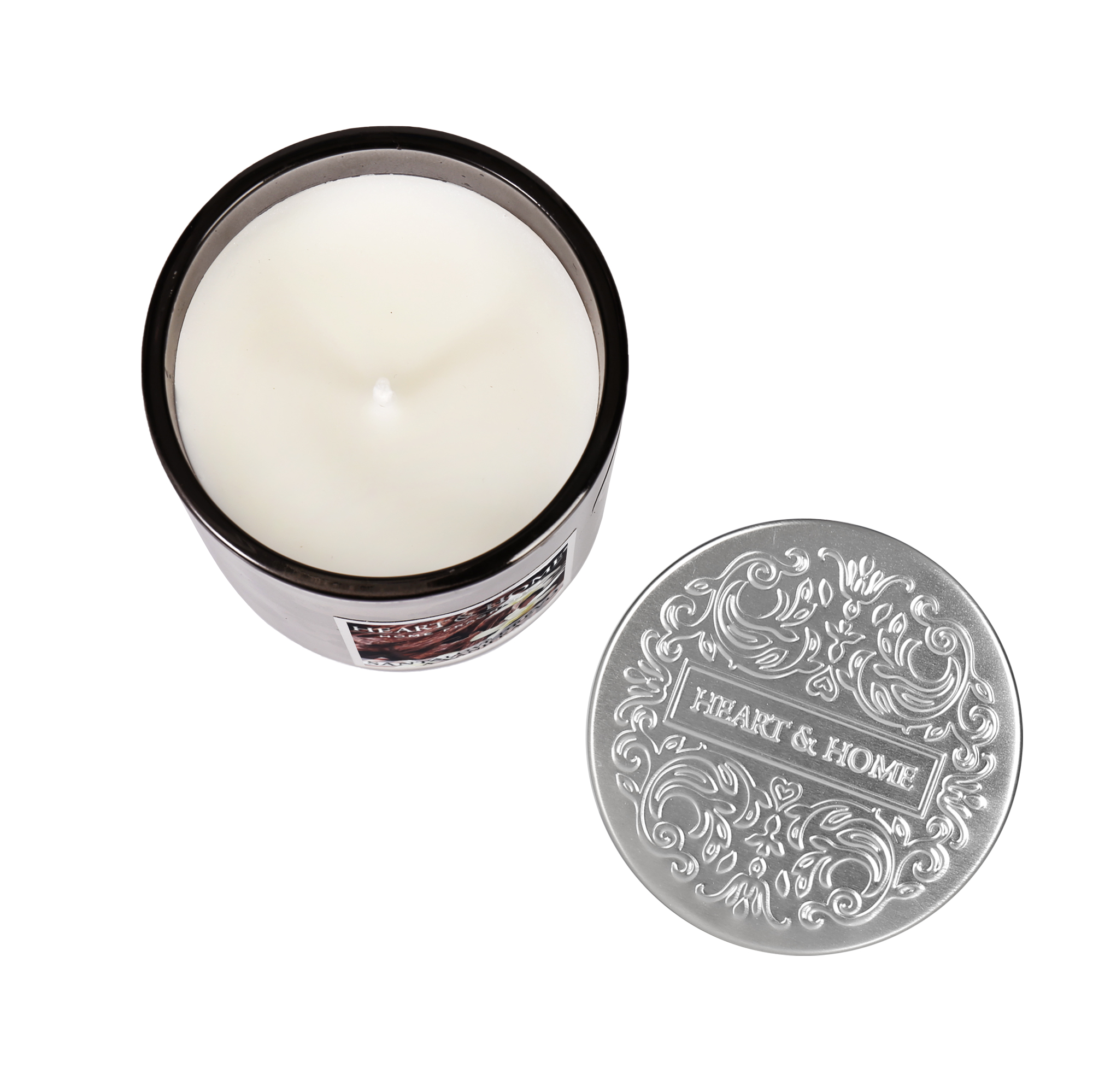 Heart and Home, to je prémiová značka vonných svíček. A proč jsou tyto svíčky tak výjimečné? Vosk pro tyto svíčky byl vyroben ze sójových bobů. Díky tomu jsou svíčky Heart and Home šetrnější a přívětivější k životnímu prostředí, jsou netoxické, a vy tak můžete relaxovat s pocitem, že jste přispěli k tomu, aby naše příroda zůstala krásná. Střední svíčky Heart and Home vydrží hořet až 30 hodin. Na rozdíl od klasických svíček totiž hoří při nízkých teplotách, a tak provoní váš domov na opravdu dlouhou dobu. Díky aromatizovanému vosku budou svíčky vonět i po zhasnutí.  Střední svíčky jsou vhodné především pro běžné, středně velké místnosti. TIP: po dohoření si můžete sklenici nechat a využít ji jako elegantní dózu nebo dekoraci. Hmotnost: 110 g Průměr svíčky: 6,5 cm Výška svíčky: 8 cm Doba hoření: až 30 hodin