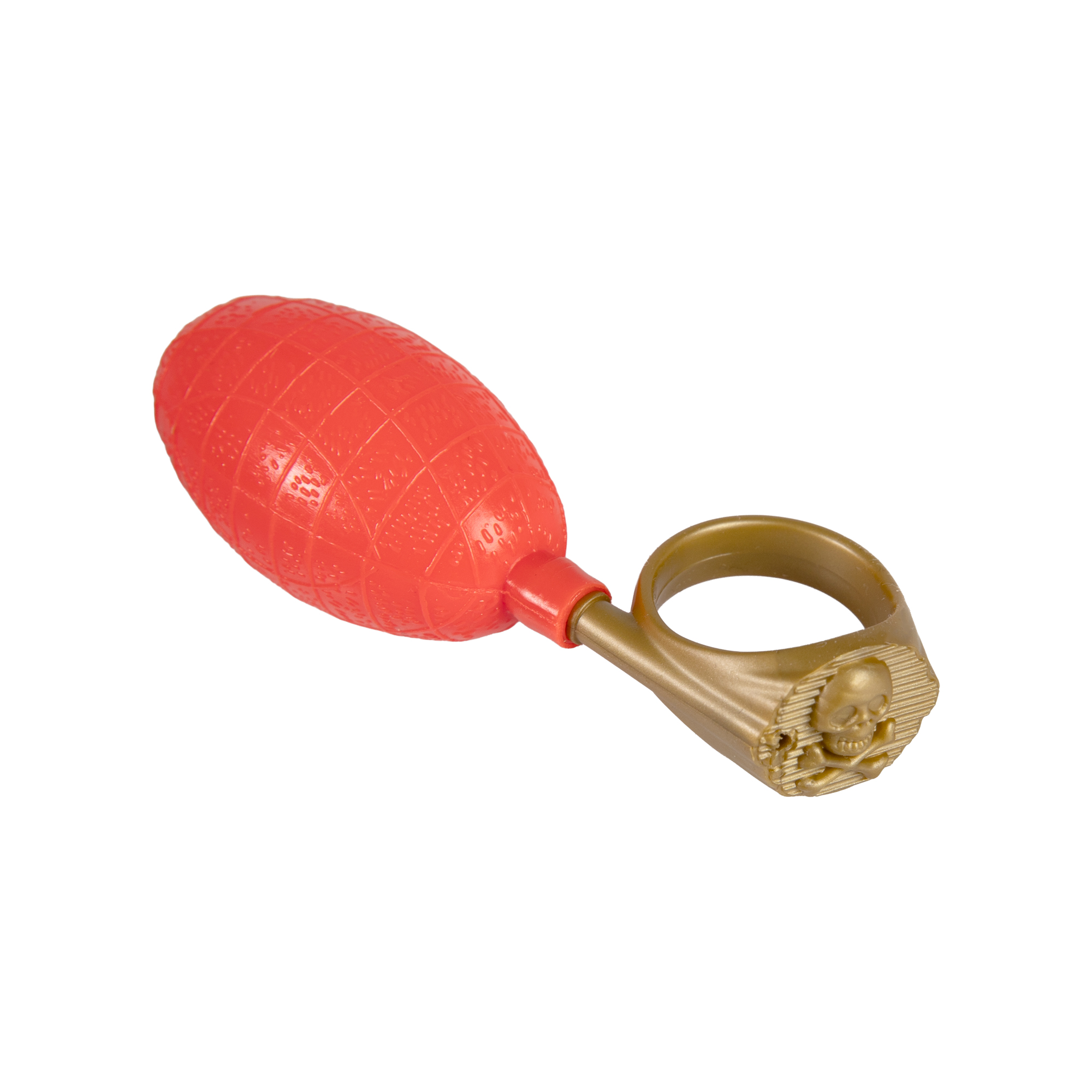 Stříkací prstýnek je nenápadná ptákovina, která pobaví na každé párty. Na první pohled vypadá jako obyčejný zlatý prstýnek s lebkou, ale uvnitř se skrývá malý vodní trik. Balónek schovaný v dlani stačí naplnit vodou, zmáčknout, a z prstýnku vystříkne proud vody rovnou na vaši oběť. Perfektní kanadský žert pro všechny, kdo se rádi smějí a chtějí rozesmát i ostatní. Prozkoumejte další bláznivé kousky z kategorie ptákoviny a postarejte se o pořádnou dávku smíchu. Rozměry: 2,3 × 2,3 cm (7,3 cm délka s balónkem) Balení obsahuje: 1 ks plastového prstýnku s plnícím balónkem