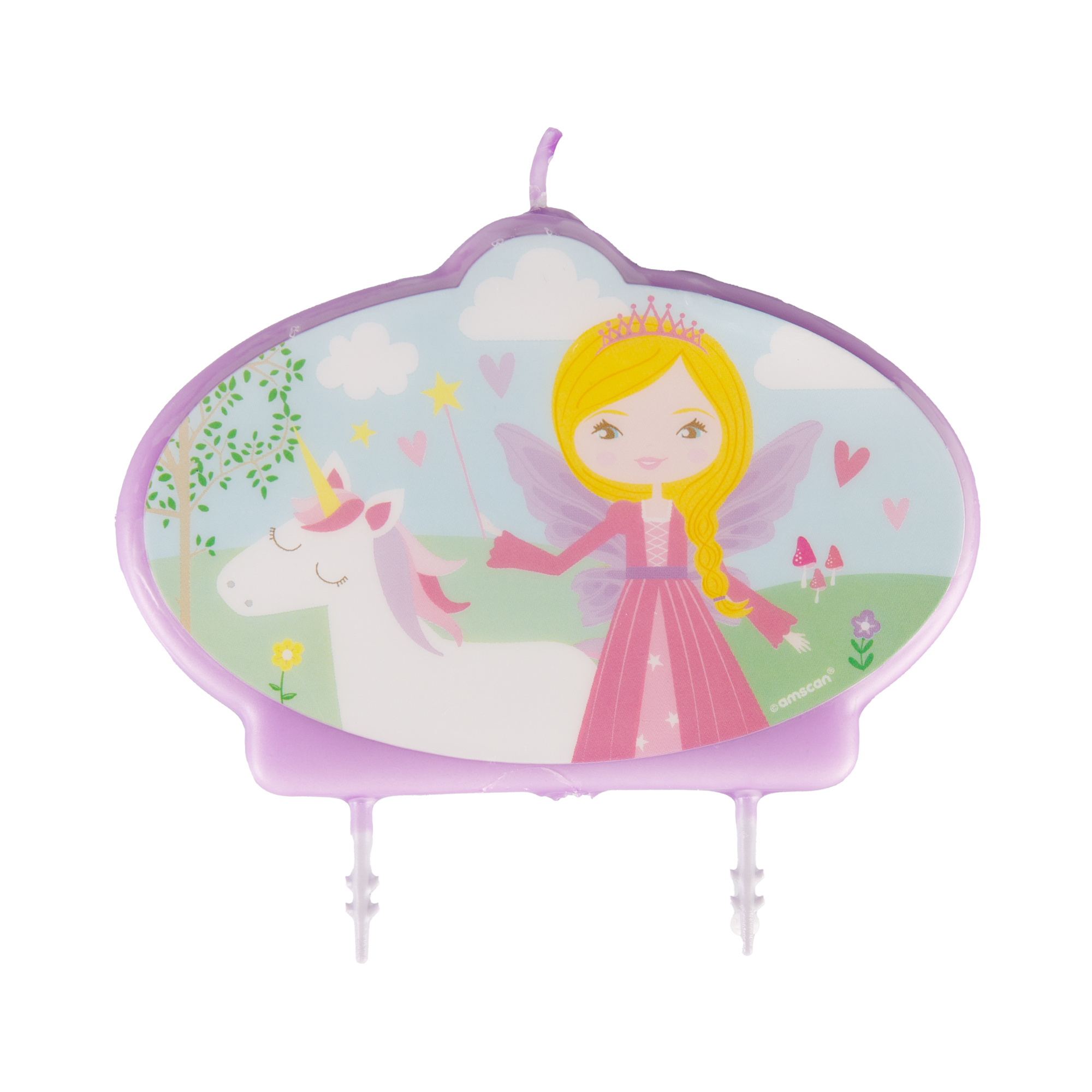 Dortová svíčka s motivem princezny a jednorožce je ideální doplněk pro narozeniny, pohádkové oslavy a slavnostní okamžiky. Tato roztomilá svíčka přinese do vaší oslavy více kouzla a pohádkové atmosféry. Díky, nádhernému motivu princezny a jednorožce si vaše malá princezna bude připadat jako v pohádce. Postup: Svíčky zapíchněte do dortu nebo do jiného měkkého podloží a před zapálením zkontrolujte zda směřují vzhůru. Upozornění: Doporučujeme produkt zapalovat ve volném, nejlépe větraném prostoru a v dostatečné vzdálenosti od stojících osob. Jako u všech hořlavin je třeba důsledně dbát na bezpečnost! Sada obsahuje: 1 ks svíčky