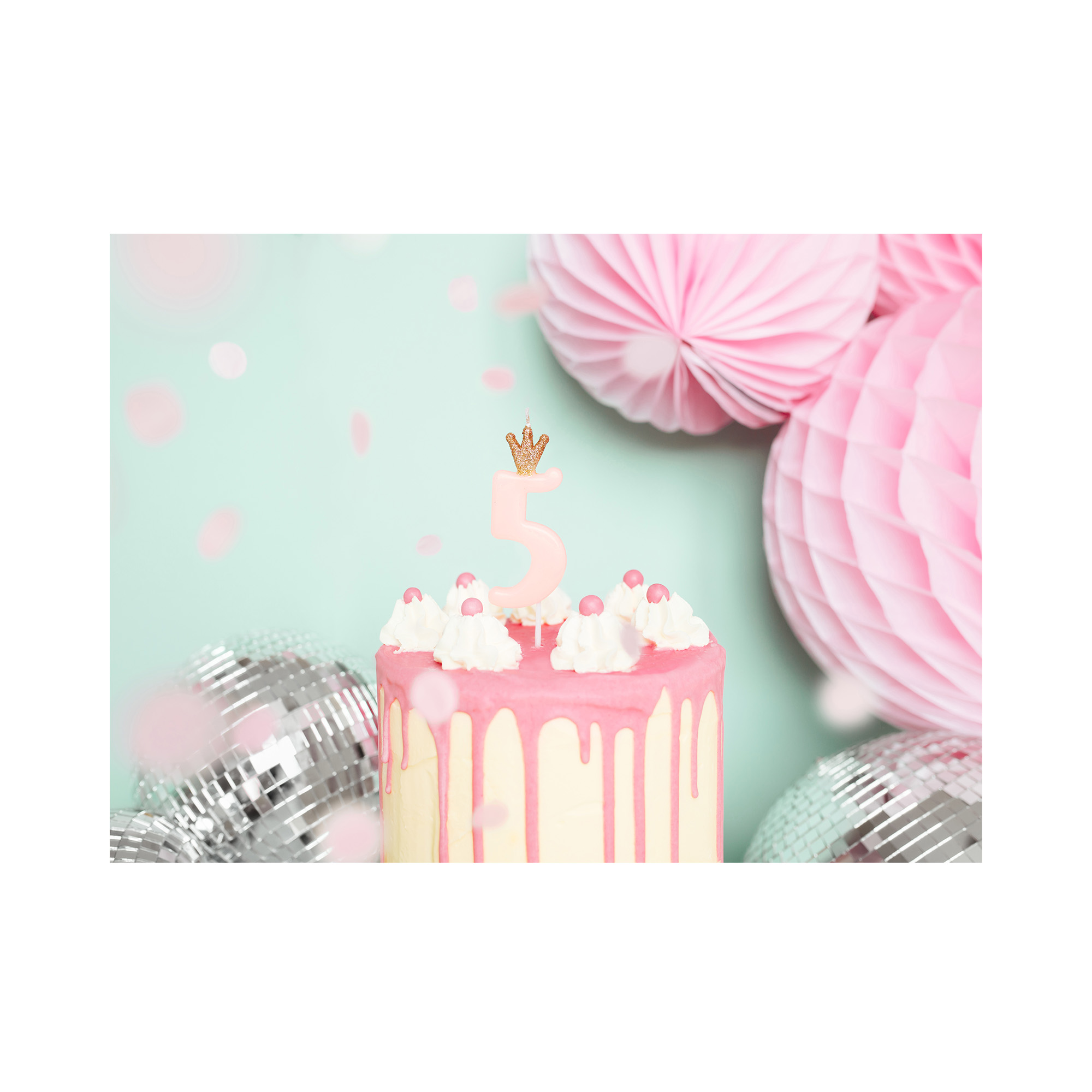 Originální dortové svíčky ve tvaru číslice 0 až 9 jsou ideální dekorace na dětskou oslavu narozenin. Každá svíčka je ozdobena malou zlatou korunkou. Jednotlivé svíčky můžete navzájem kombinovat a vytvořit, tak potřebné číslo. Svíčky mají růžovou barvu a budou se dobře kombinovat s párty doplňky a dekoracemi ve stejném odstínu. Pro inspiraci můžete navštívit naši sekci Tematické oslavy – Růžová. Postup: Svíčku zapíchneme do dortu nebo do jiného měkkého podloží, před zapálením zkontrolujeme zda směřuje vzhůru. Upozornění: Doporučujeme produkt zapalovat ve volném, nejlépe venkovním prostoru a v dostatečné vzdálenosti od stojících osob. Neumísťujeme k hořícím svíčkám ani k jiným hořlavým předmětům! Jako u všech hořlavin je třeba důsledně dbát na bezpečnost a přistupovat k ní jako k hořlavině. Výška svíčky: cca 9,5 cm Obsah balení: 1 ks růžové svíčky s korunkou