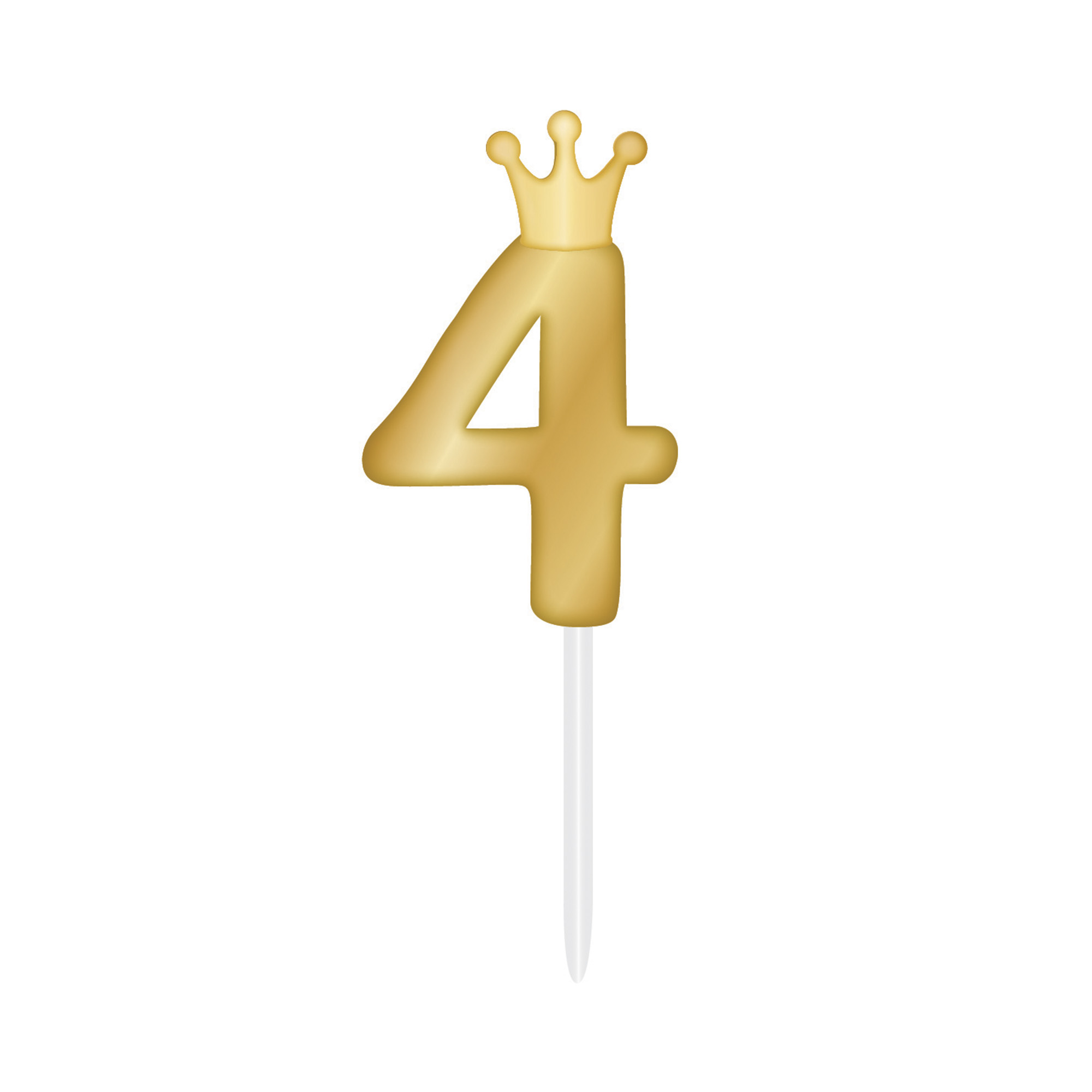 Originální dortové svíčky ve tvaru zlatých číslic 0 až 9 s korunkou stylově dozdobí dort na dětskou narozeninovou oslavu či párty. Jednotlivé svíčky můžete navzájem kombinovat a vytvořit tak potřebné číslo. Postup: Svíčku zapíchneme do dortu nebo do jiného měkkého podkladu, před zapálením zkontrolujeme, zda směřuje vzhůru. Upozornění: Doporučujeme produkt zapalovat ve volném, nejlépe venkovním prostoru a v dostatečné vzdálenosti od stojících osob. Neumísťujeme k hořícím svíčkám ani k jiným hořlavým předmětům! Jako u všech hořlavin je třeba důsledně dbát na bezpečnost a přistupovat k ní jako k hořlavině. Výška svíčky: 6 cm (10,5 cm včetně plastového zápichu) Obsah balení: 1 ks zlaté svíčky s korunkou