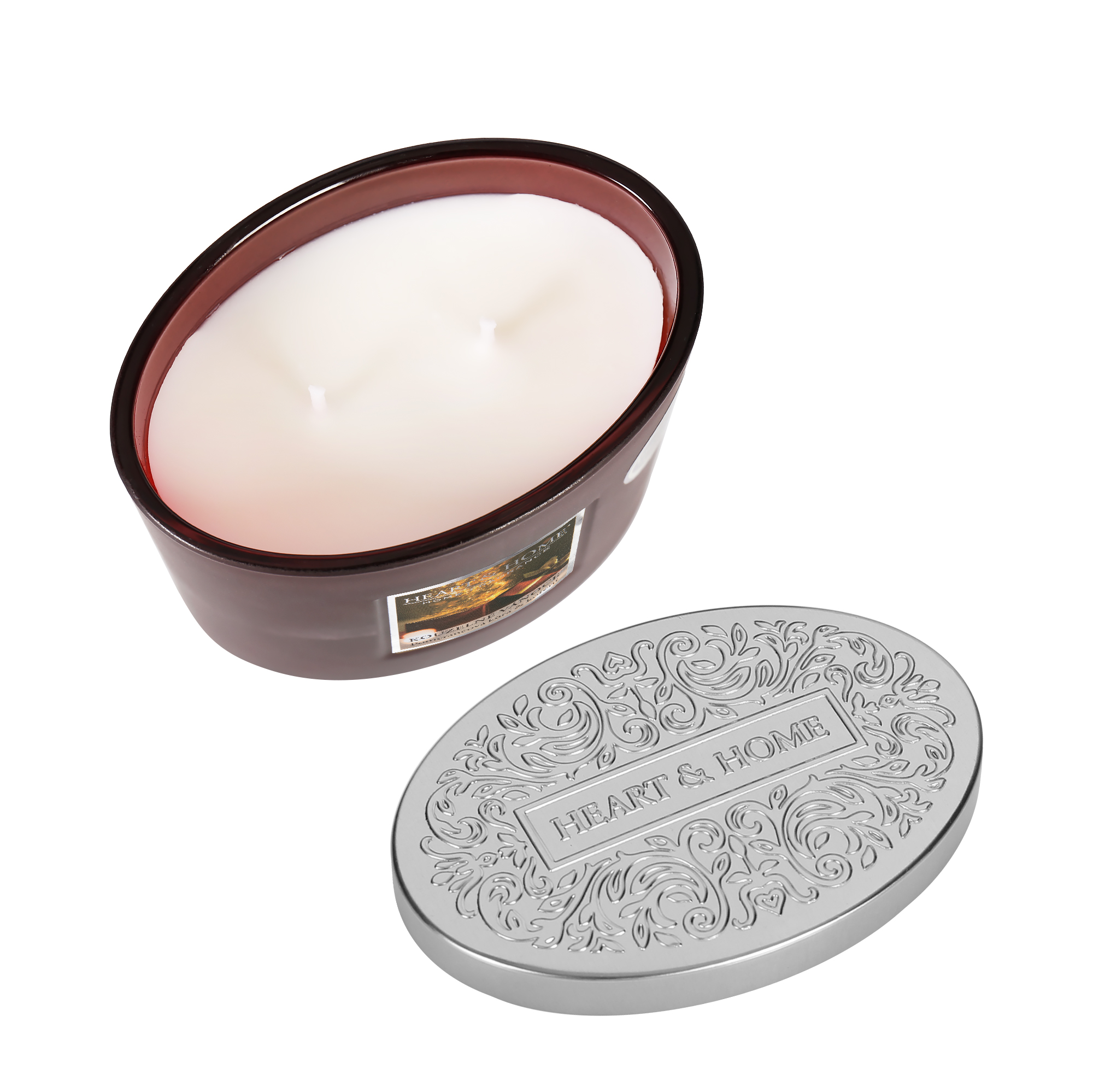Heart and Home, to je prémiová značka vonných svíček. A proč jsou tyto svíčky tak výjimečné? Vosk pro tyto svíčky byl vyroben ze sójových bobů. Díky tomu jsou svíčky Heart and Home šetrnější a přívětivější k životnímu prostředí, jsou netoxické, a vy tak můžete relaxovat s pocitem, že jste přispěli k tomu, aby naše příroda zůstala krásná. velké svíčky se dvěma knoty vydrží hořet až 40 hodin. Na rozdíl od klasických svíček totiž hoří při nízkých teplotách, a tak provoní váš domov na opravdu dlouhou dobu. Díky aromatizovanému vosku budou svíčky vonět i po zhasnutí. Velké svíčky jsou vhodné především do větších místností. TIP: po dohoření si můžete sklenici nechat a využít ji jako elegantní dózu nebo dekoraci. Hmotnost: 220 g Doba hoření: až 40 hodin Pro rovnoměrné hoření svíčky zapalujte oba knoty.