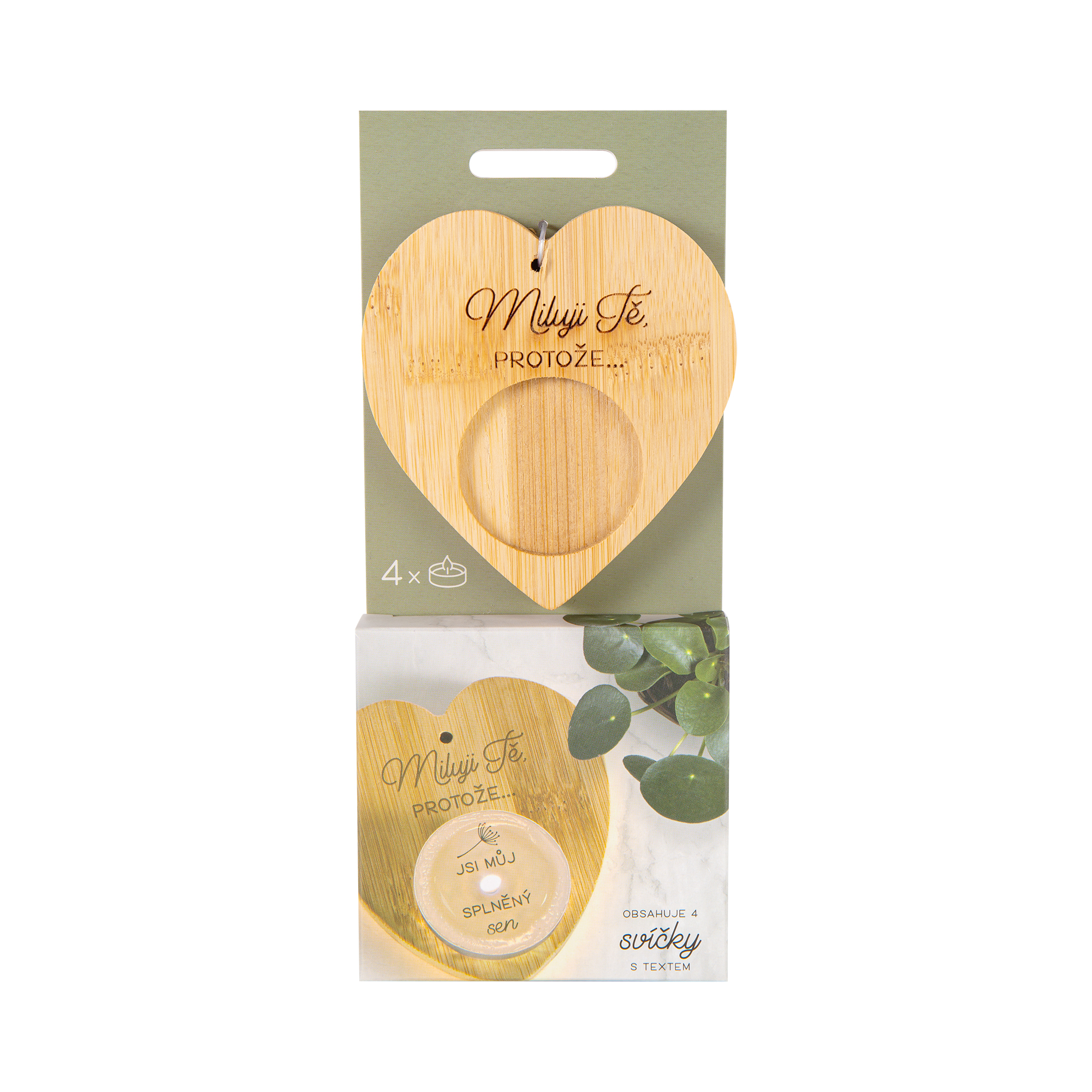 Dárkové balení svícnu s věnováním a 4 svíček s milým textem, který se magicky objeví až po rozehřátí vosku. Umístěte svíčku do bambusového svícnu s věnováním a vychutnejte si moment, kdy se ve světle plápolajícího plamene odhalí tajemství skryté pod vrstvou rozehřátého vosku. Balení obsahuje bambusový svícen a 4 čajové svíčky s různými vzkazy. Svíčky s překvapením jsou vhodné jako dárek pro maminku, babičku nebo pro paní učitelku. Můžete je věnovat k narozeninám, k Vánocům nebo jen tak pro štěstí.