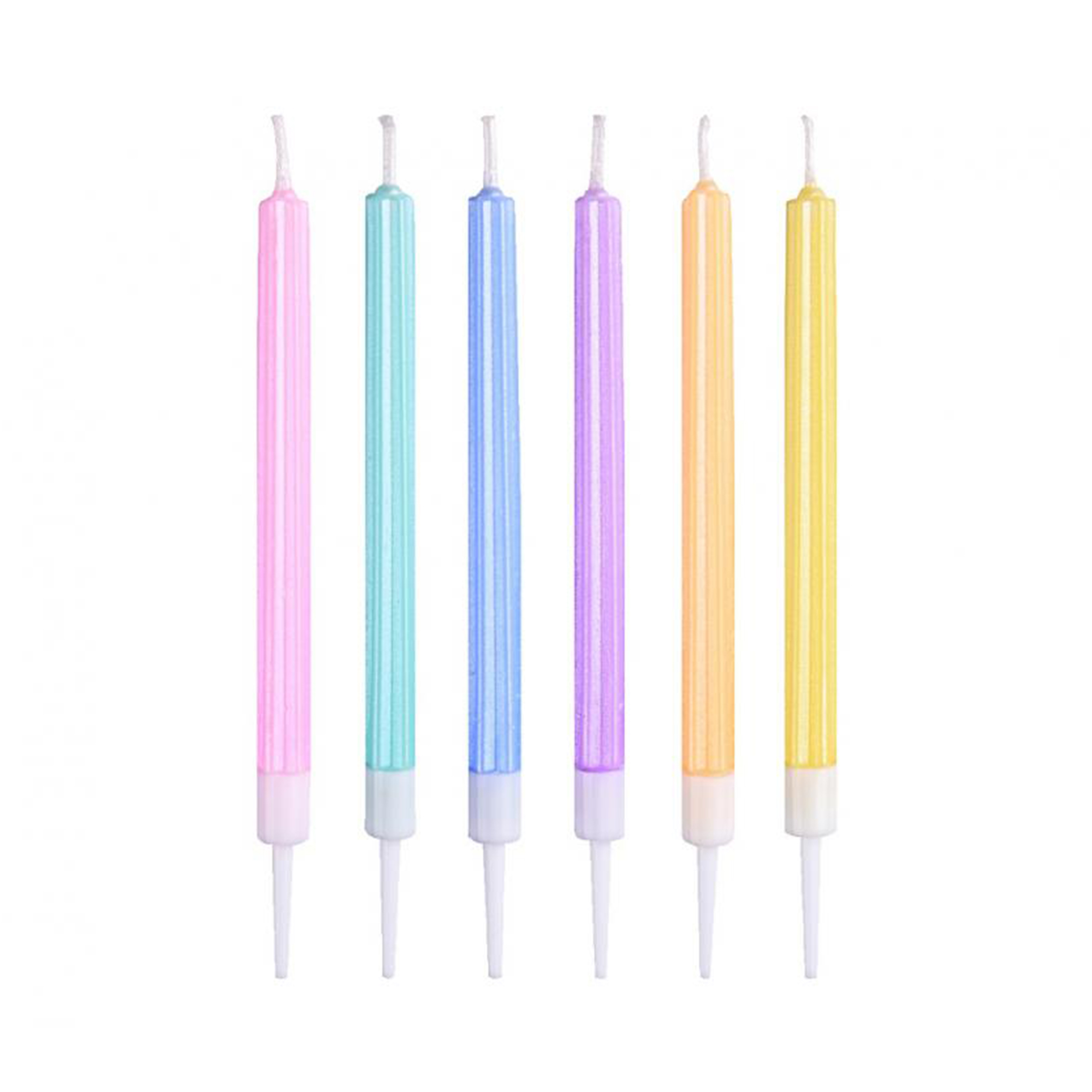 Veselá sada dortových svíček v pastelových barvách, jako krásný doplněk narozeninového dortu. Dortové svíčky jsou vhodné pro slavnostní okamžiky jako jsou narozeniny, dětské oslavy a tematické párty. Postup: Svíčky zapíchněte do dortu nebo do jiného měkkého podloží a před zapálením zkontrolujte zda směřují vzhůru. Upozornění: Doporučujeme produkt zapalovat ve volném, nejlépe větraném prostoru a v dostatečné vzdálenosti od stojících osob. Jako u všech hořlavin je třeba důsledně dbát na bezpečnost! Sada obsahuje: 6 ks svíček Velikost: 12,5 cm