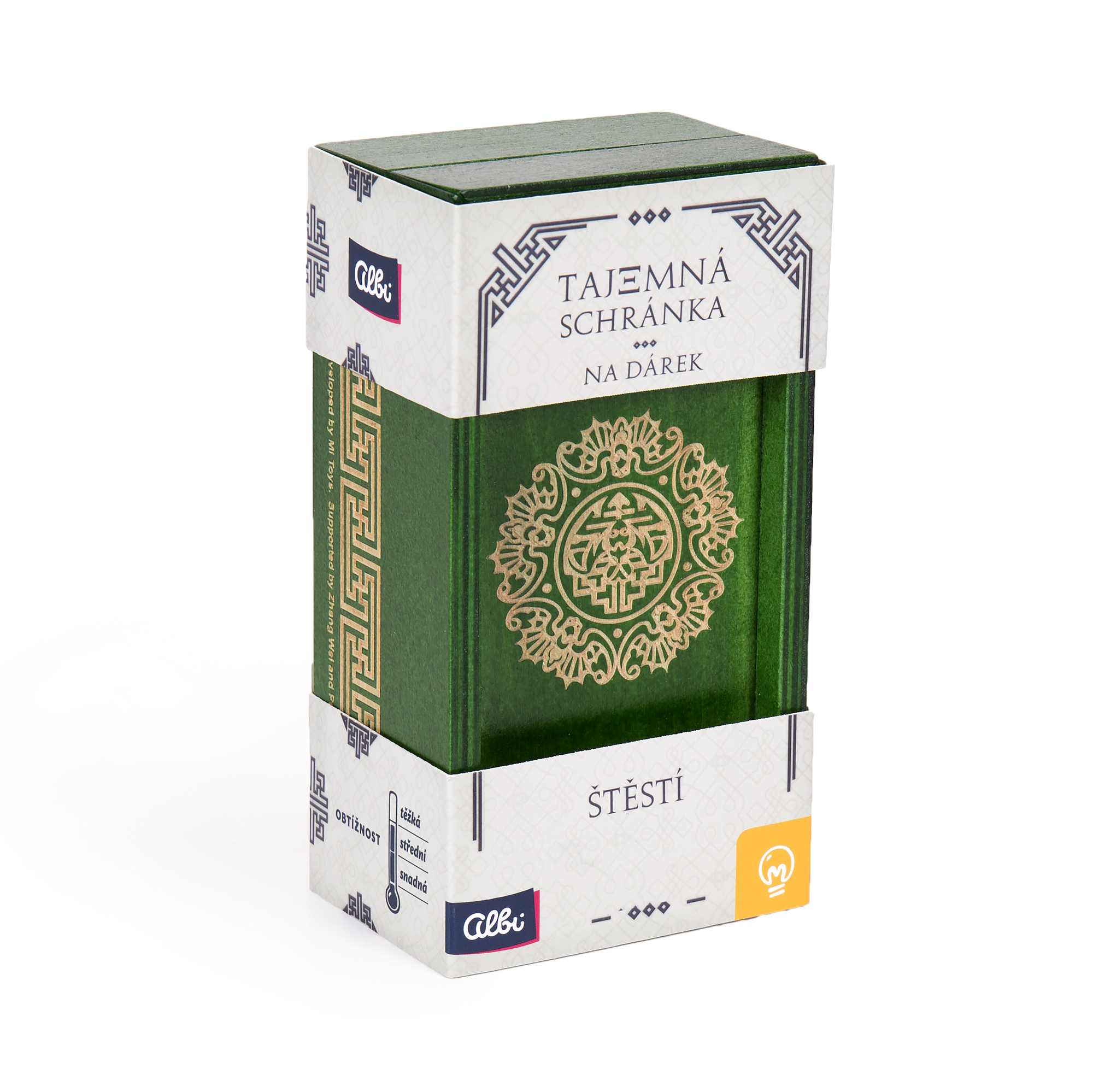 Tajemná schránka z řady Mozkovna je skřínka ze dřeva, do které můžete schovat drobný dárek. Skřínka je zároveň hlavolamem, kterému musí obdarovaný nejdříve přijít na kloub, aby zjistil, jaké překvapení na něj uvnitř čeká. Otvorem ze strany krabičky můžete dovnitř vhodit plochý předmět (mince, přívěsek), nebo můžete krabičku podle návodu otevřít a vložit větší předmět, poté ji znovu zavřít. Tajemná schránka je skvělým tipem jak darovat něco malého. Potěší nejen nadšence do luštění a hlavolamů. Vybírat si můžete z menší a větší velikosti. Rozměry mini skřínky: 6,5 cm × 15 cm × 5 cm Rozměry velké skřínky: 8 cm × 15 cm × 5,5 cm Rozměry vnitřního prostoru malé skřínky: 3,5 cm × 9,8 cm × 2 cm Rozměry vnitřního prostoru velké skřínky: 6,5 cm × 10 cm × 2,5 cm