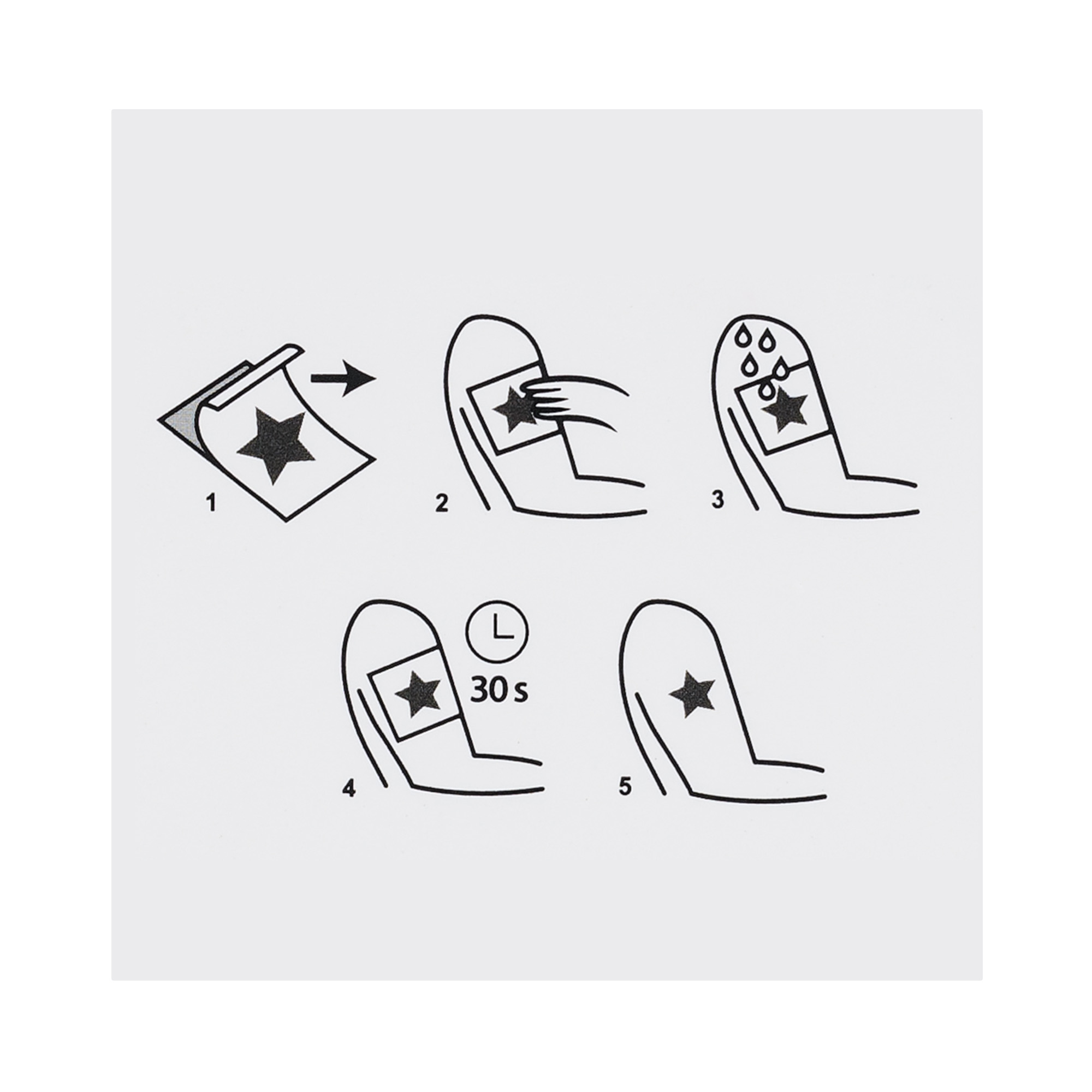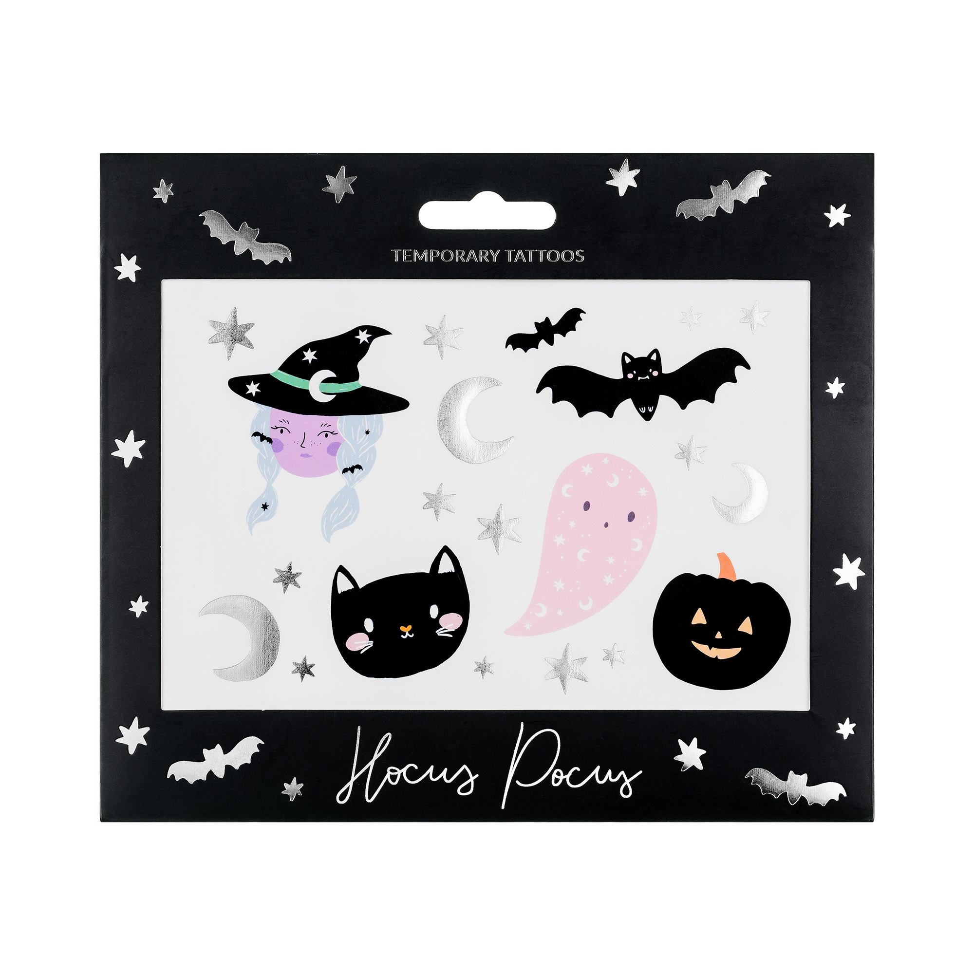 Sada dočasných tetování s halloweenskými a čarodějnickými motivy perfektně doplní každý strašidelný kostým. Arch obsahuje 20 tetování – čarodějnici, netopýry, kočku, ducha, smějící se dýni a mnoho stříbrných hvězdiček a měsíců. Zábavný doplněk, který pobaví malé i velké a skvěle doladí atmosféru halloweenské párty nebo oslavy pálení čarodějnic. Další párty doplňky a dekorace se strašidelným motivem naleznete v naší tematické kategorii Halloween nebo Pálení čarodějnic. Postup: Tetování stačí navlhčit vodou a za 30 sekund je hotové! Balení obsahuje: 20 ks vzorů omyvatelných tetování