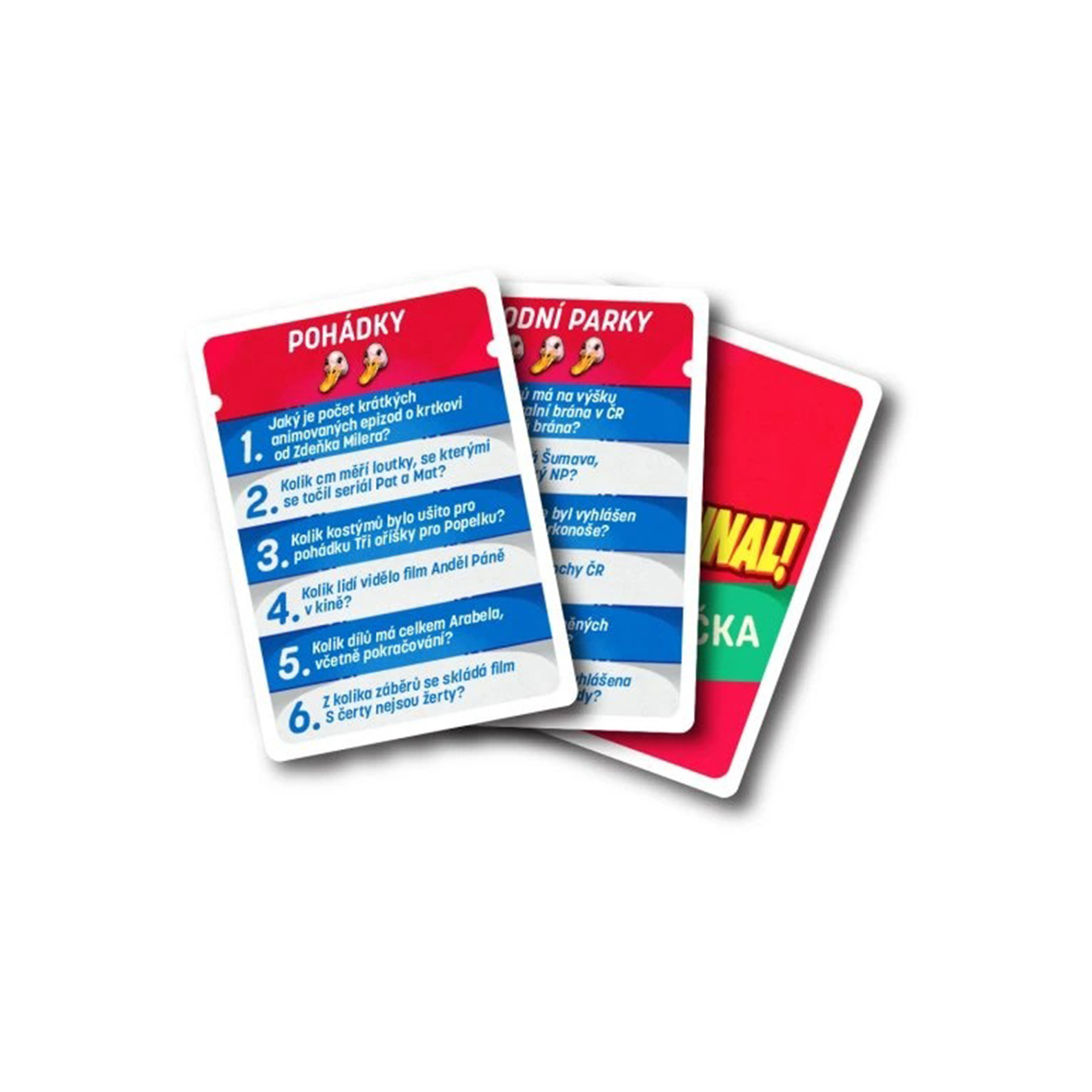 Tos přehnal! – Česko je zábavné rozšíření oblíbené hádací párty hry, které přináší 360 nových otázek zaměřených na Českou republiku, rozdělených do 60 témat. Ideální volba pro všechny, kdo chtějí otestovat své znalosti a užít si ještě více zábavy s přáteli nebo rodinou. Princip hry zůstává jednoduchý a návykový: hráči postupně tipují číselné odpovědi a snaží se být co nejblíže správnému výsledku, aniž by ho překročili. Pokud má někdo pocit, že předchozí tip už byl „přes čáru“, zahlásí „Tos přehnal!“ a následuje odhalení správné odpovědi. Kdo se splete, získává kartu s trestnými body v podobě „hloupých hus“. Rozšíření snadno přidáte k základní hře Tos přehnal! a okamžitě získáte větší variabilitu i nové tematické otázky z českého prostředí. Díky nenáročnosti na prostor je hra perfektní na cesty, večírky i neformální setkání. Hra obsahuje také 2 volitelná rozšířená pravidla, která přinášejí další možnosti a zpestření hry. Hra Tos přehnal! – Česko obsahuje: 60 karet témat, 10 karet zdvojovaček, česká pravidla.