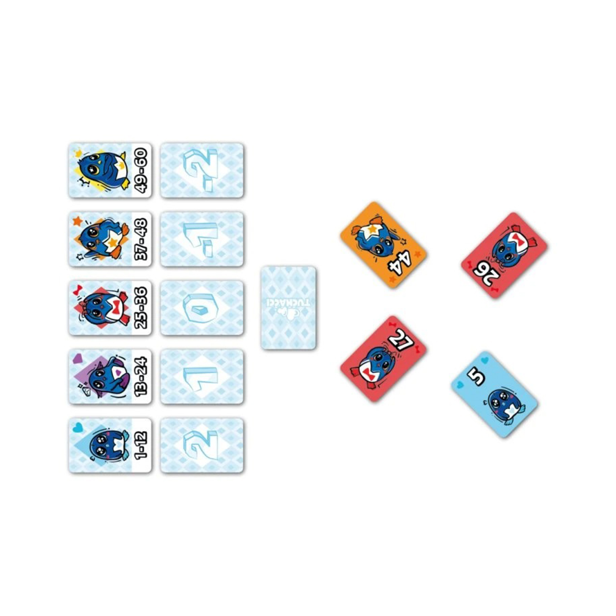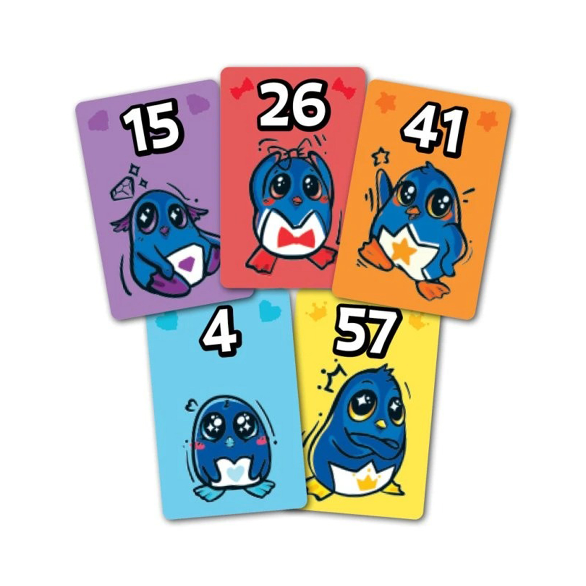 Ve štychové karetní hře Tučňáčci se každý hráč snaží přilákat co nejroztomilejší tučňáky – čím jsou menší, tím jsou roztomilejší. Háček je ovšem v tom, že tučňáci vždy jdou za většími tučňáky. Kdo bude mít na konci nejvíce bodů roztomilosti, zvítězí. Hra má celkem šedesát karet v hodnotě 1-60 rozdělených podle velikosti do pěti barev. Hráči mají vždy dvě karty v ruce a ten, kdo v rámci štychu zahraje největší, bere vše. To ale ne vždy musí být dobře! Nejroztomilejší jsou totiž jen ti nejmenší tučňáčci, za které získáváte pozitivní body, naopak za ty největší body ztrácíte! Po odehrání všech karet se spočítá, kdo si vedl nejlépe! V pravidlech najdete i variantu, kdy mají tučňáčci náhodné bodové hodnoty, nikoliv seřazené dle velikosti. Tučňáčci jsou velmi přístupná karetní hra s jednoduchými pravidly, která je snadno přenosná a ideální pro hraní s kýmkoli a kdekoli! Hra Tučňáčci obsahuje: 60 karet tučňáků (modří 1–12, fialoví 13–24, červení 25–36, oranžoví 37–48 a žlutí 49–60), 5 karet barev v pěti různých barvách a 5 karet hodnot (2, 1, 0, -1, -2).