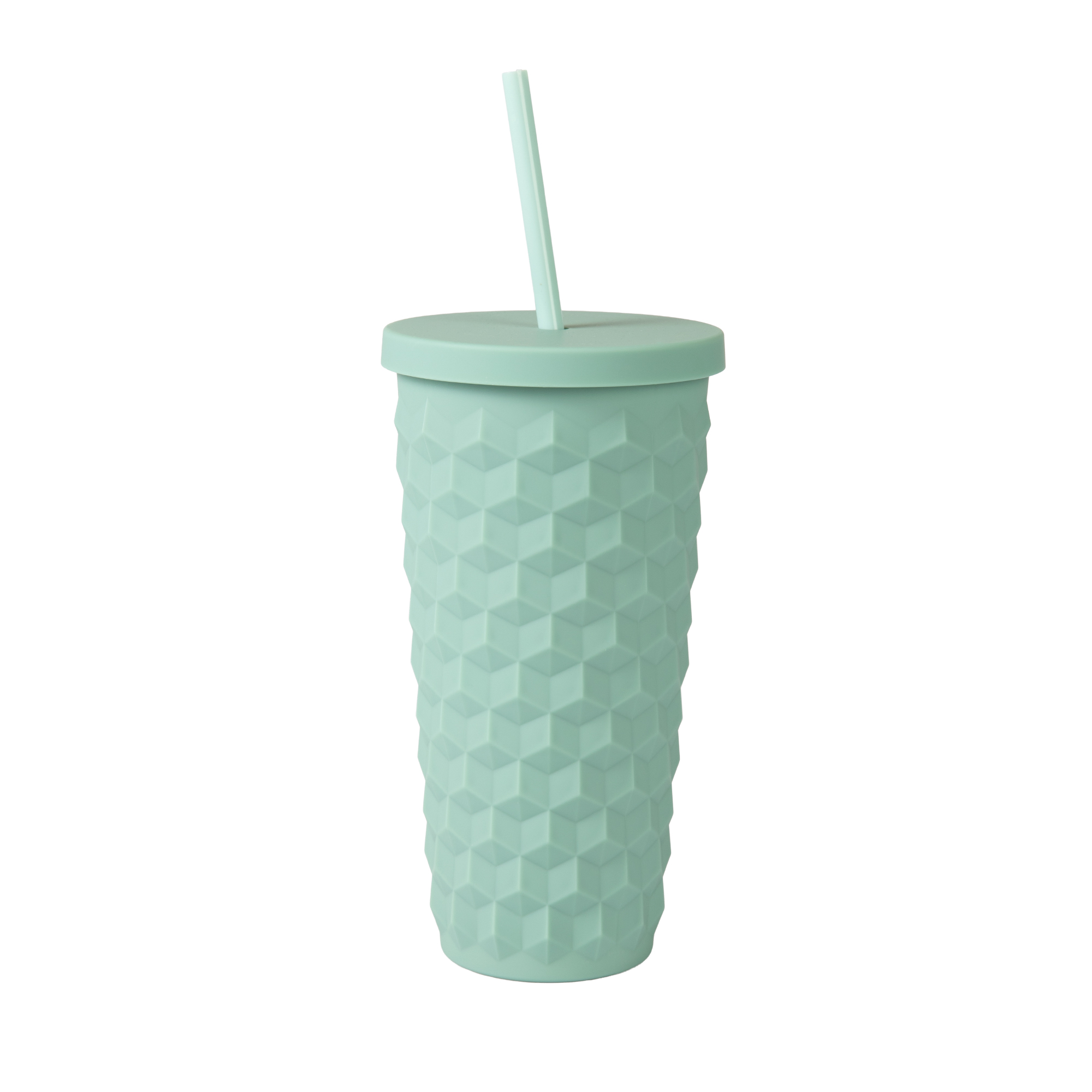 originální tumbler s výrazným 3D efektem zaujme svým moderním vzhledem a elegantní tyrkysovou barvou. Díky šroubovacímu víku a brčku si můžete svůj oblíbený nápoj pohodlně vychutnávat kdykoli během dne. Brčko je omyvatelné a opakovaně použitelné, ušetříte tak čas i planetu. Hrnek je přizpůsobený na nápoje až do 70 °C, takže se skvěle hodí na kávu, limonády i smoothie. Díky brčku, které ma zarážku, aby z víčka nevypadávalo, z něj můžete pít okamžitě a bez zdržování, což oceníte nejen v práci nebo při studiu, ale také například při řízení, kdy se potřebujete napít rychle a pohodlně. Produkt není vhodný do myčky nádobí a mikrovlnné trouby. Objem: 650 ml Materiál hrnku: PS – polystyren Materiál brčka: PP – polypropylen Průměr dna: 6,5 cm