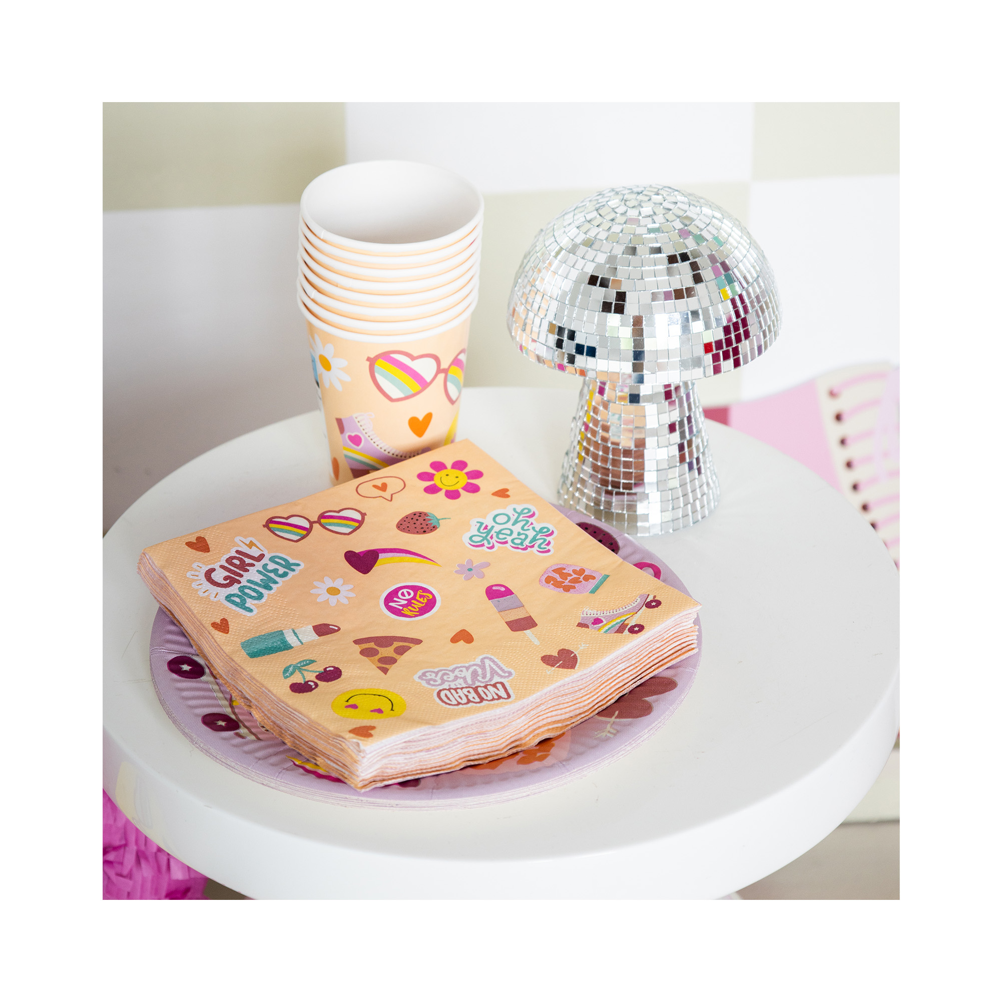 Ubrousky v broskvové a růžové barvě jsou potištěny veselým vzorem Boho Girlz. Využijete je na holčičí narozeninovou oslavu nebo dětskou venkovní párty. Tyto ubrousky můžete zkombinovat s dalšími párty doplňky a dekoracemi z veselé řady Boho Girlz. Rozměr ubrousků: 33 cm × 33 cm Balení obsahuje: 20 ks papírových ubrousků