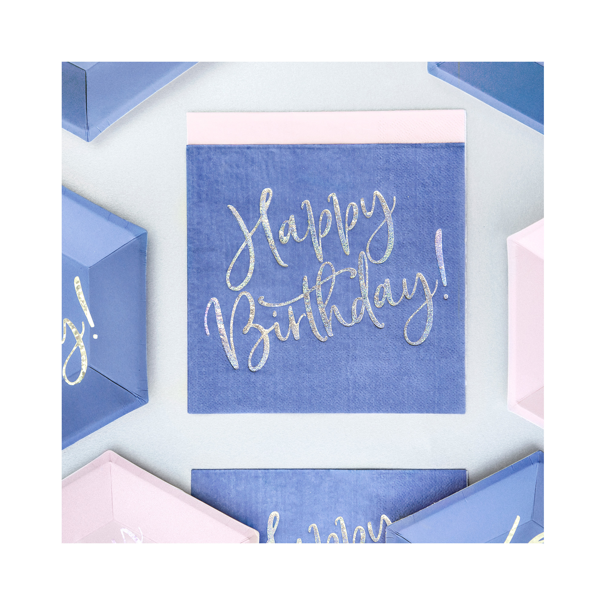 Balení dvaceti papírových ubrousků s holografickým potiskem nápisu Happy Birthday! je skvělá volba, jak stolování na narozeninové oslavě vyřešit stylově a prakticky. Ubrousky v tmavě modré barvě lze snadno sladit s dalšími produkty z kolekce Happy B'day! nebo s párty dekoracemi a doplňky ve stejném odstínu. Rozměry: 16,5 × 16,5 cm (v rozloženém stavu 33 × 33 cm) Balení obsahuje: 20 ks ubrousků