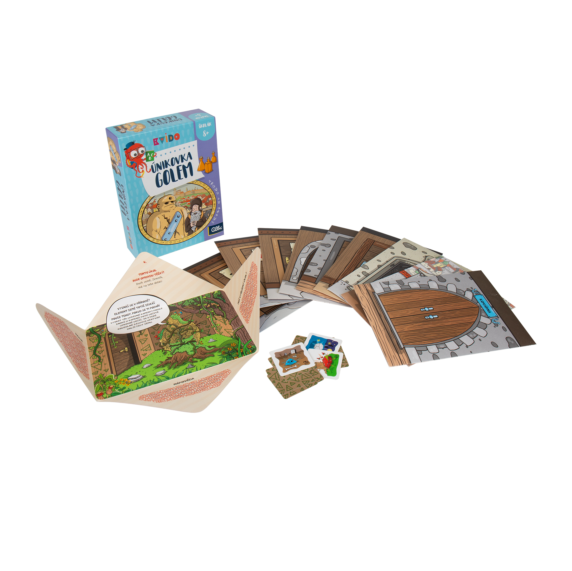Nacházíte se v tajné pracovně rabiho Löwa jako jeho pomocníci. Vytvořili jste postavu Golema, který vám má pomáhat v Židovském městě pražském, ale nevíte, jak jej oživit. Potřebujete vytvořit tajuplný šém, který jej přivede k životu… Děti se v této dobrodružné stolní únikové hře vydají po stopách Golema do deseti různých místností. Zde budou plnit netradiční úkoly a hádanky, odhalovat skrytá tajemství a indicie, které jim napoví, jak dál v příběhu pokračovat. Hra rozvíjí dedukci a logické uvažování. Mimo jiné si s ní děti procvičí čtení s porozuměním a řešení netradičních úkolů. Úniková hra Golem obsahuje: 10 interaktivních obálek místností s netradičními hádankami a překvapením, červenou fólii na čtení tajných nápisů, mazatelný fix, průvodní list, návod ke hře a tajný návod ke znovusestavení hry.
