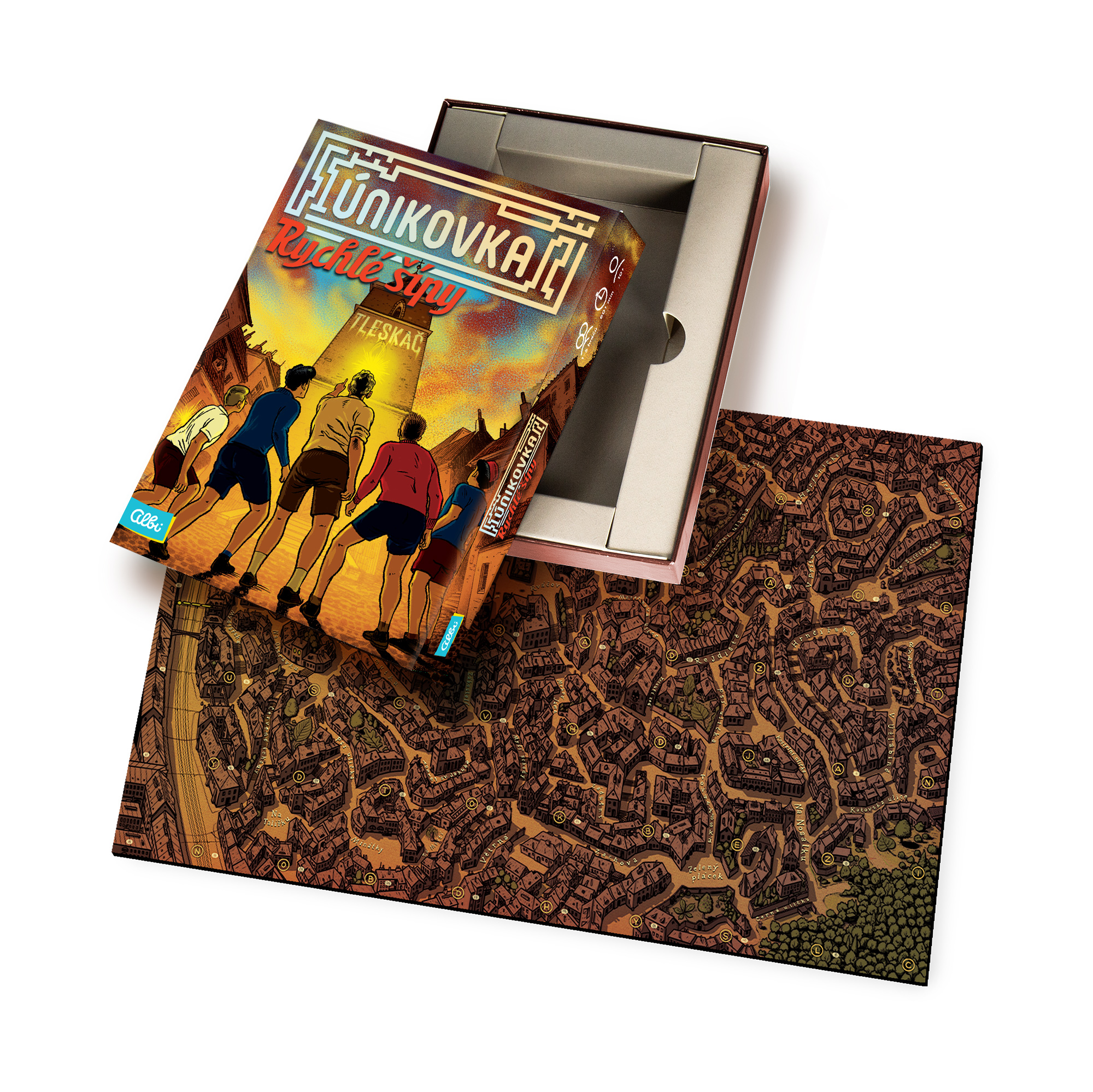 Vydejte se s Rychlými šípy odhalit tajemství Jana Tleskače. Úniková karetní hra inspirovaná příběhy Rychlých šípů od Jaroslava Foglara je určena pro 1-5 hráčů od 10 let. Hráči v ní spolu s Rychlými šípy putují po Stínadlech, kde vždy otočí 1 dílek mapy, který jim dá instrukce s tím, co mají dělat či vyřešit. Krok za krokem tak společně luští logické úkoly a prožívají postupně se rozvíjející příběh. Tato kooperativní logická hra je rozdělena do 3 kapitol, které je možné hrát odděleně, nebo najednou. Můžete si tak zvolit, zda si zahrajete 3 kratší partie, či jednu dlouhou. Upozornění: Hry Únikovky můžete hrát plnohodnotně pouze jednou (při opakovaném hraní už budete znát řešení rébusů). Darujte ji po odehrání přátelům a porovnejte si své výsledky. Únikovka Tleskač – Rychlé šípy obsahuje: 54 kartiček Stínadel, brožurku s hádankami a příběhem.