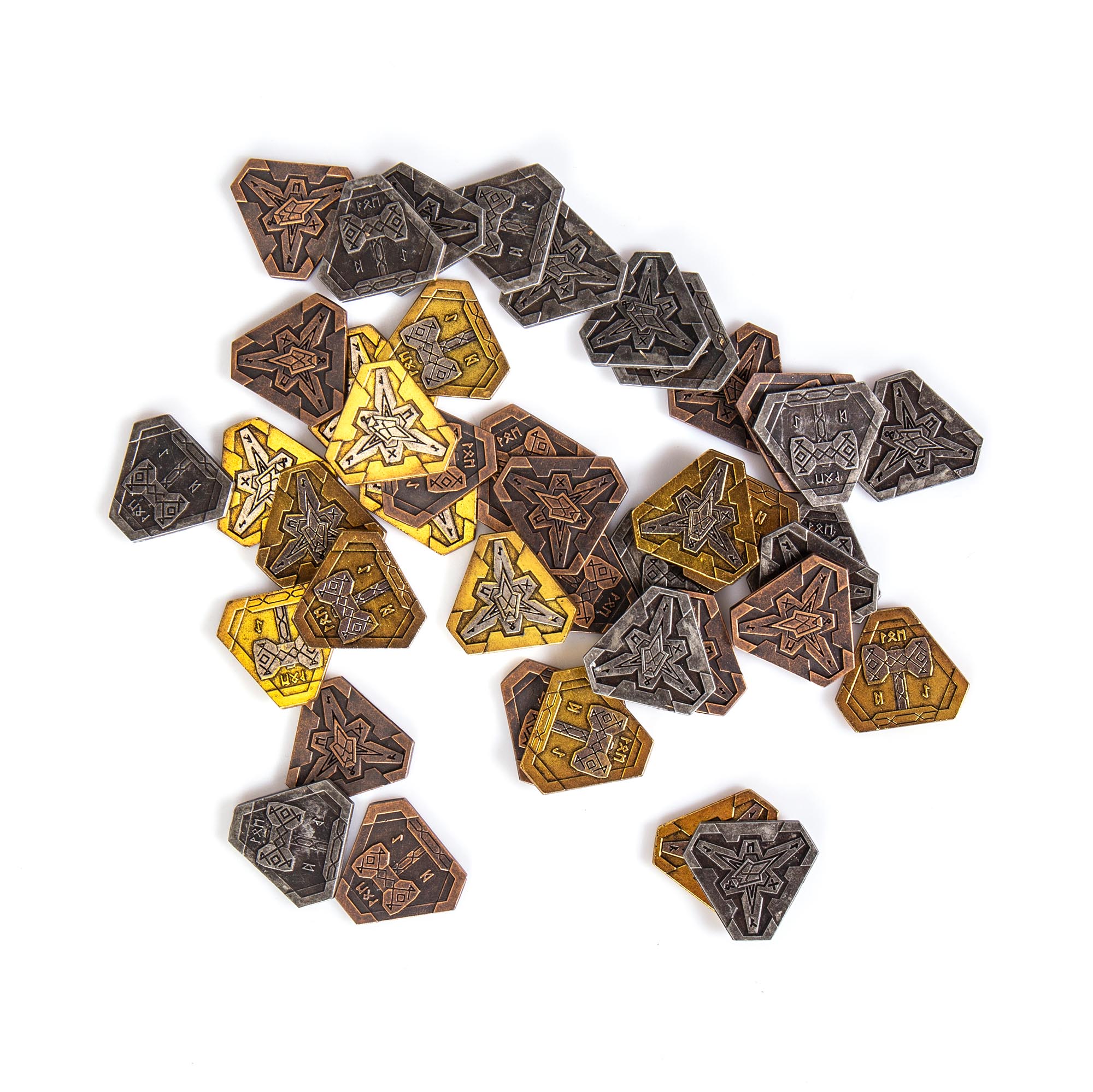 sada kvalitních kovových mincí s trpasličím motivem, určených ke zkvalitnění vašeho deskoherního zážitku. Balení obsahuje: 45 mincí ve 3 barevných provedeních (včetně dvojbarevného) a plátěný pytlík.