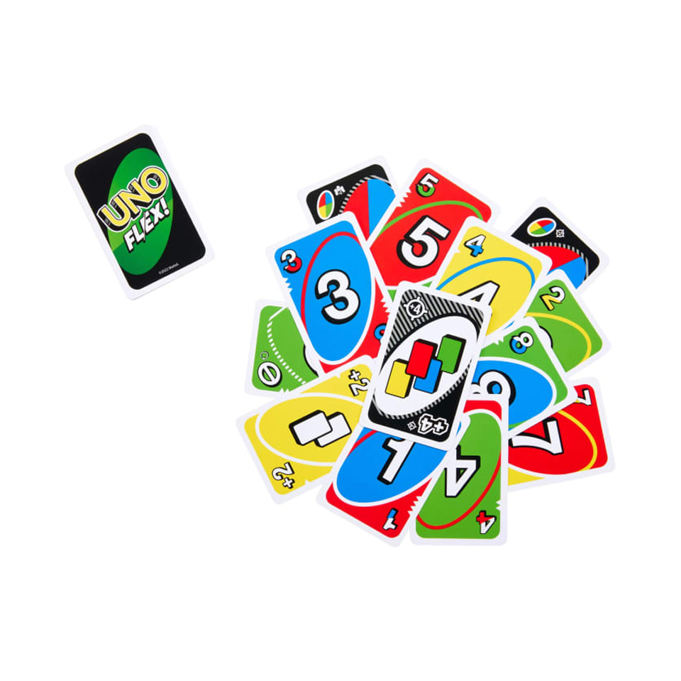 Karetní hra UNO Flex je nová verze oblíbené hry UNO, která umožňuje změnit barvu a některá pravidla! Speciální karty umožňují hráčům měnit barvu karty podle potřeby. Z červené čtyřky se může v mžiku oka stát zelená čtyřka. Akční karty a karty změn přidávají do hry ještě více zvratů! Tato hra je skvělou volbou pro rodiny, večírky a herní večery a skvělým dárkem pro fanoušky UNO a karetních her.